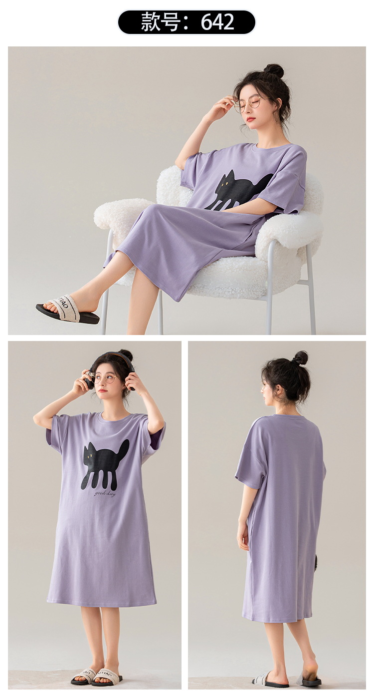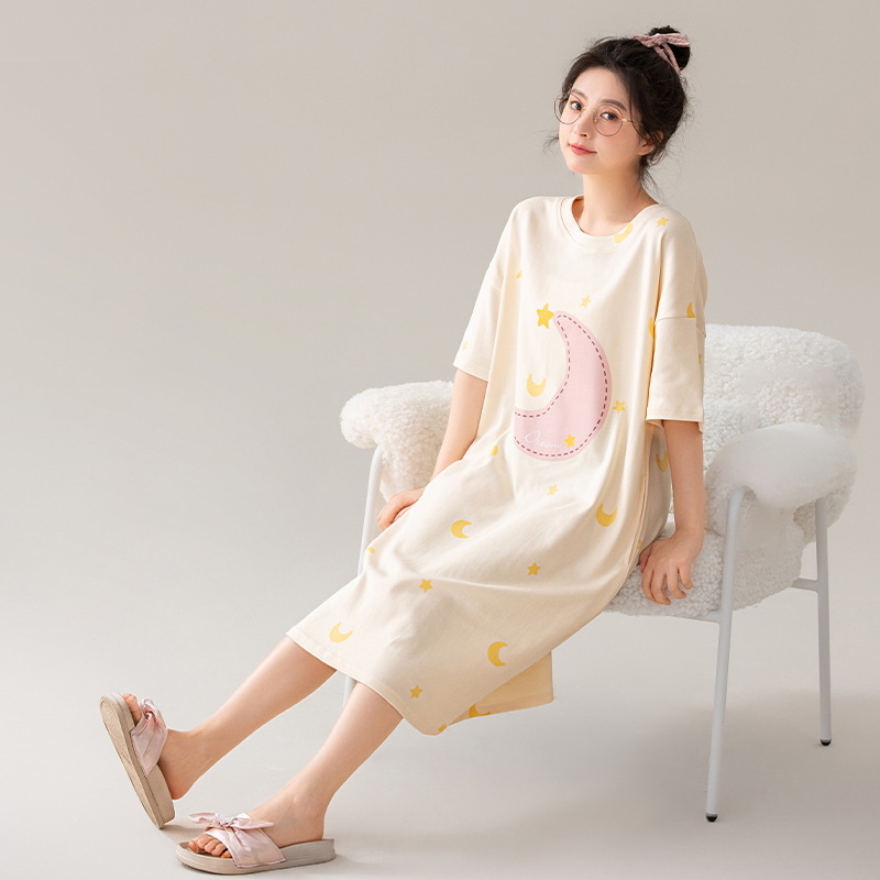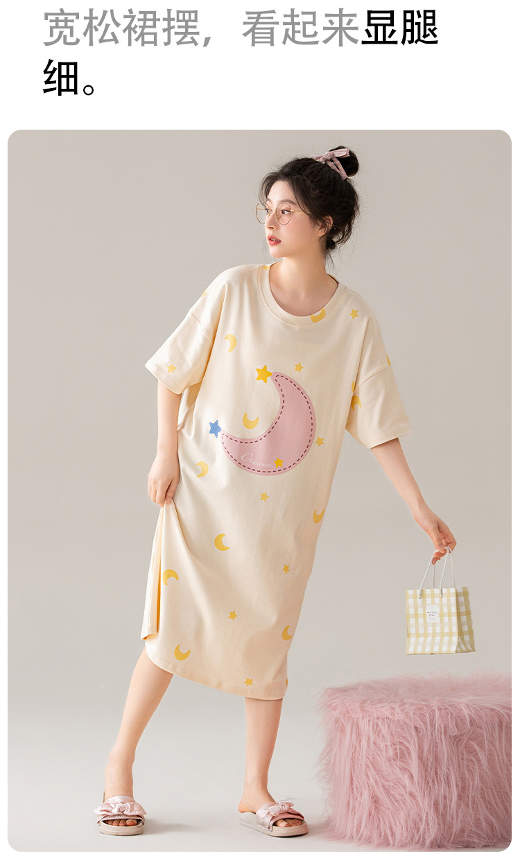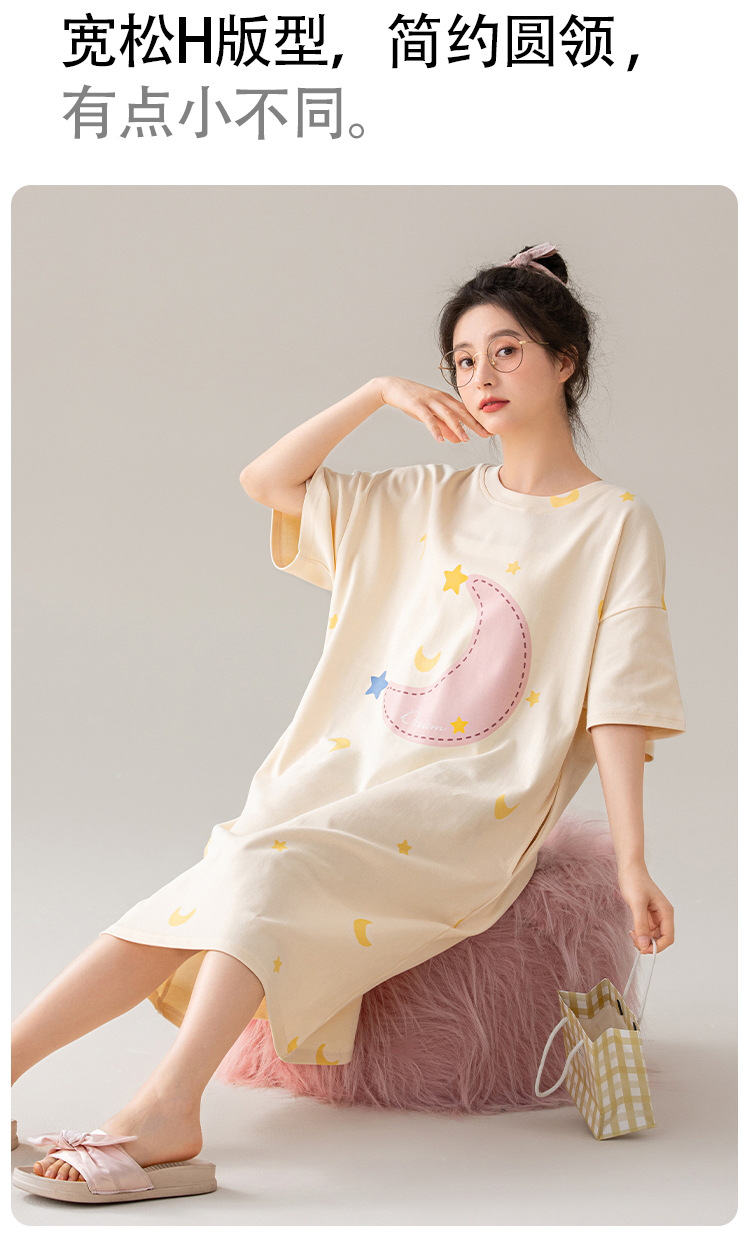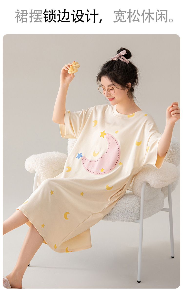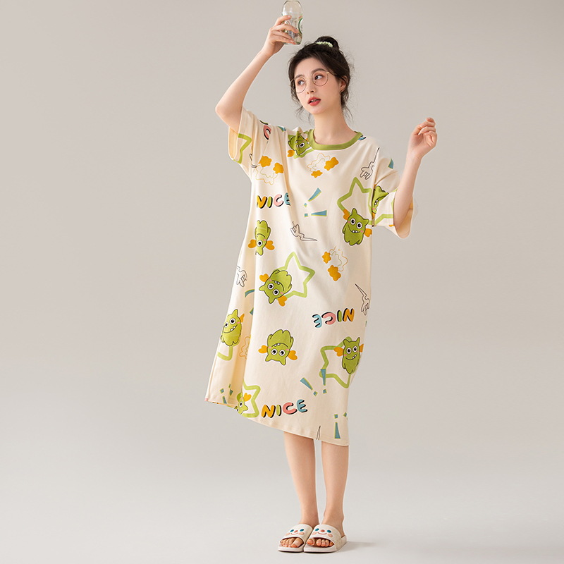 퓨어 코튼 나이트 드레스 여성 여름 2025 새로운 여름 잠옷 반팔 얇은 달콤한 스타일 소녀의 원피스 둥근 목스토어 가기