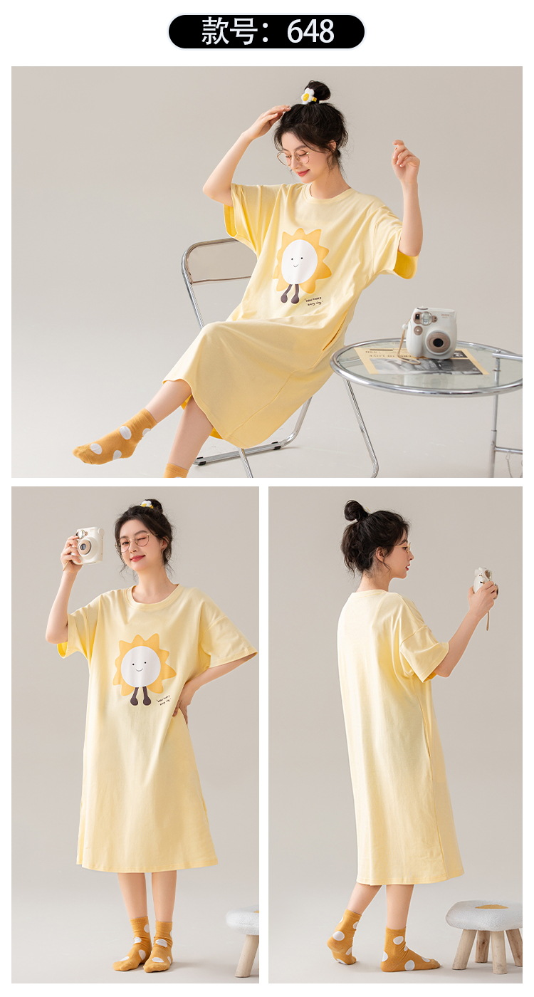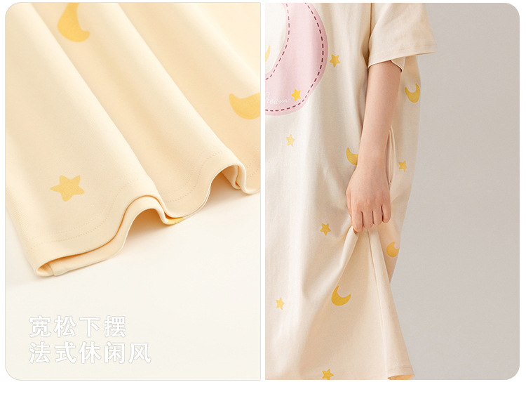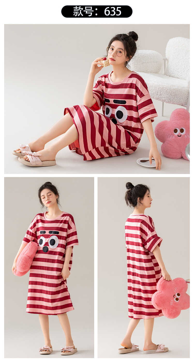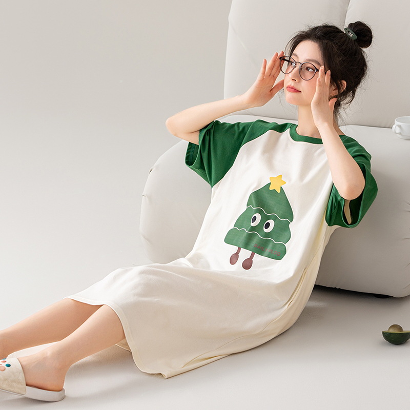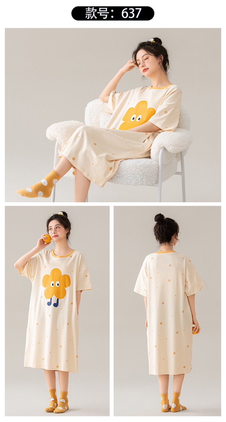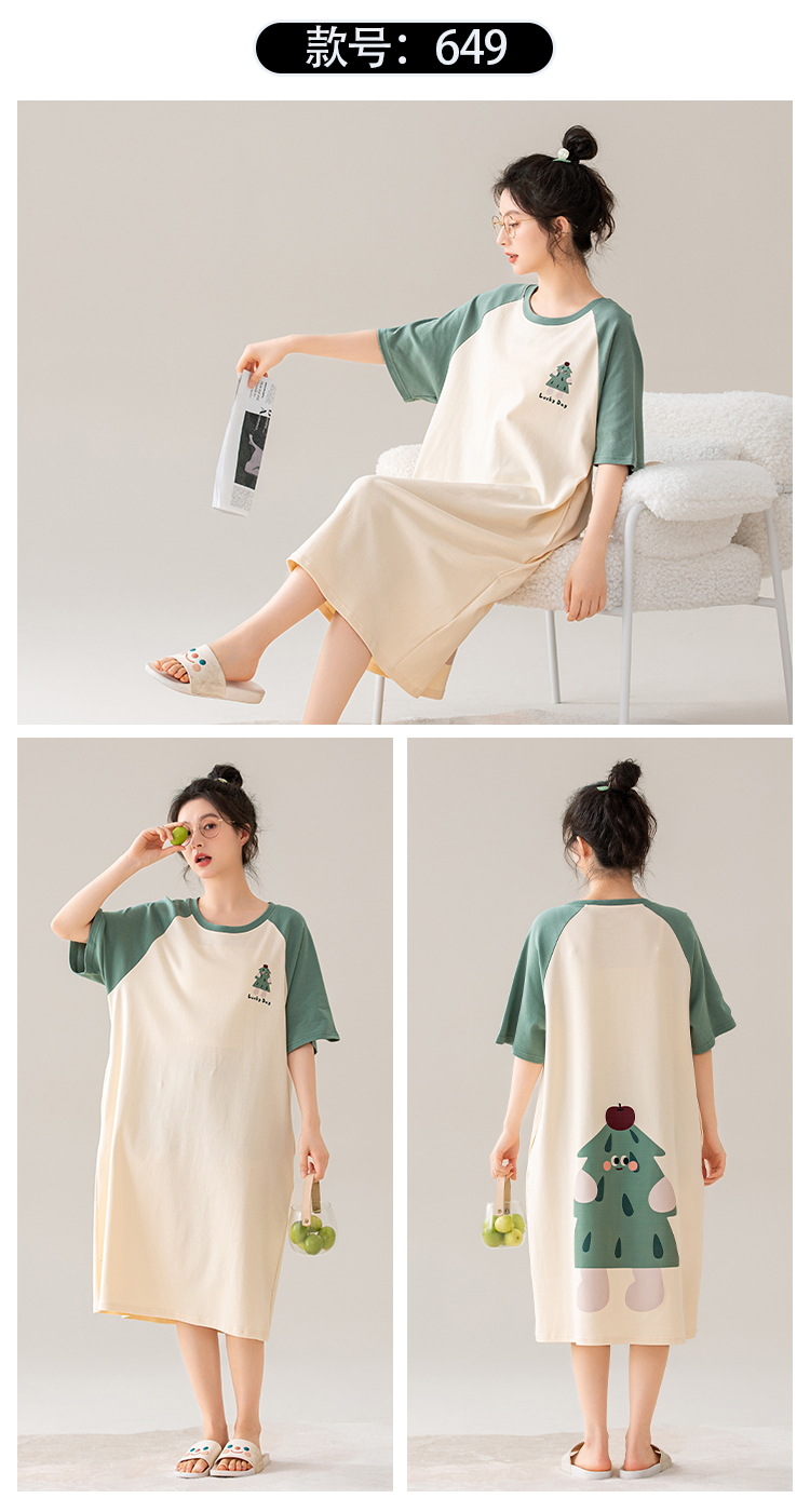 퓨어 코튼 나이트 드레스 여성 여름 2025 새로운 여름 잠옷 반팔 얇은 달콤한 스타일 소녀의 원피스 둥근 목스토어 가기