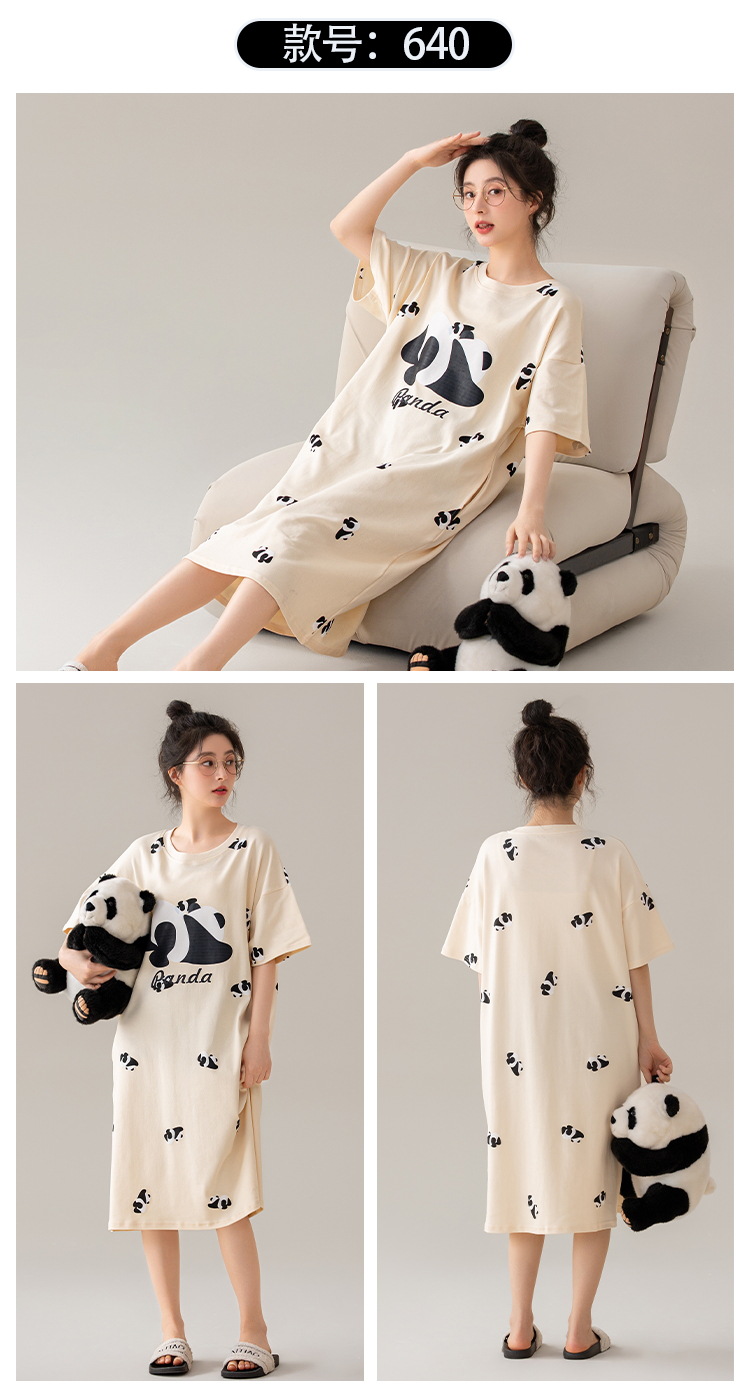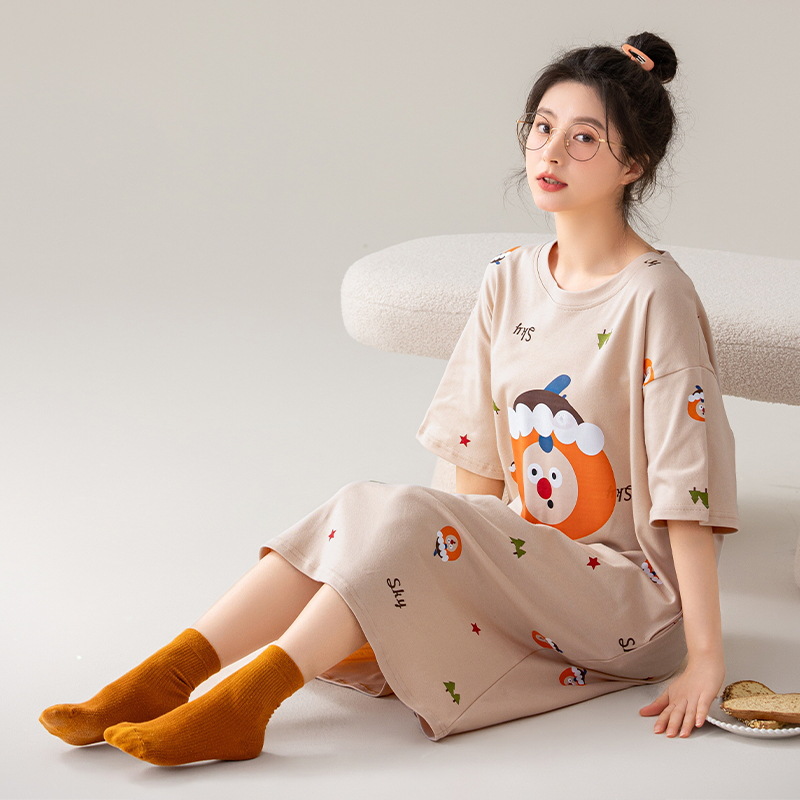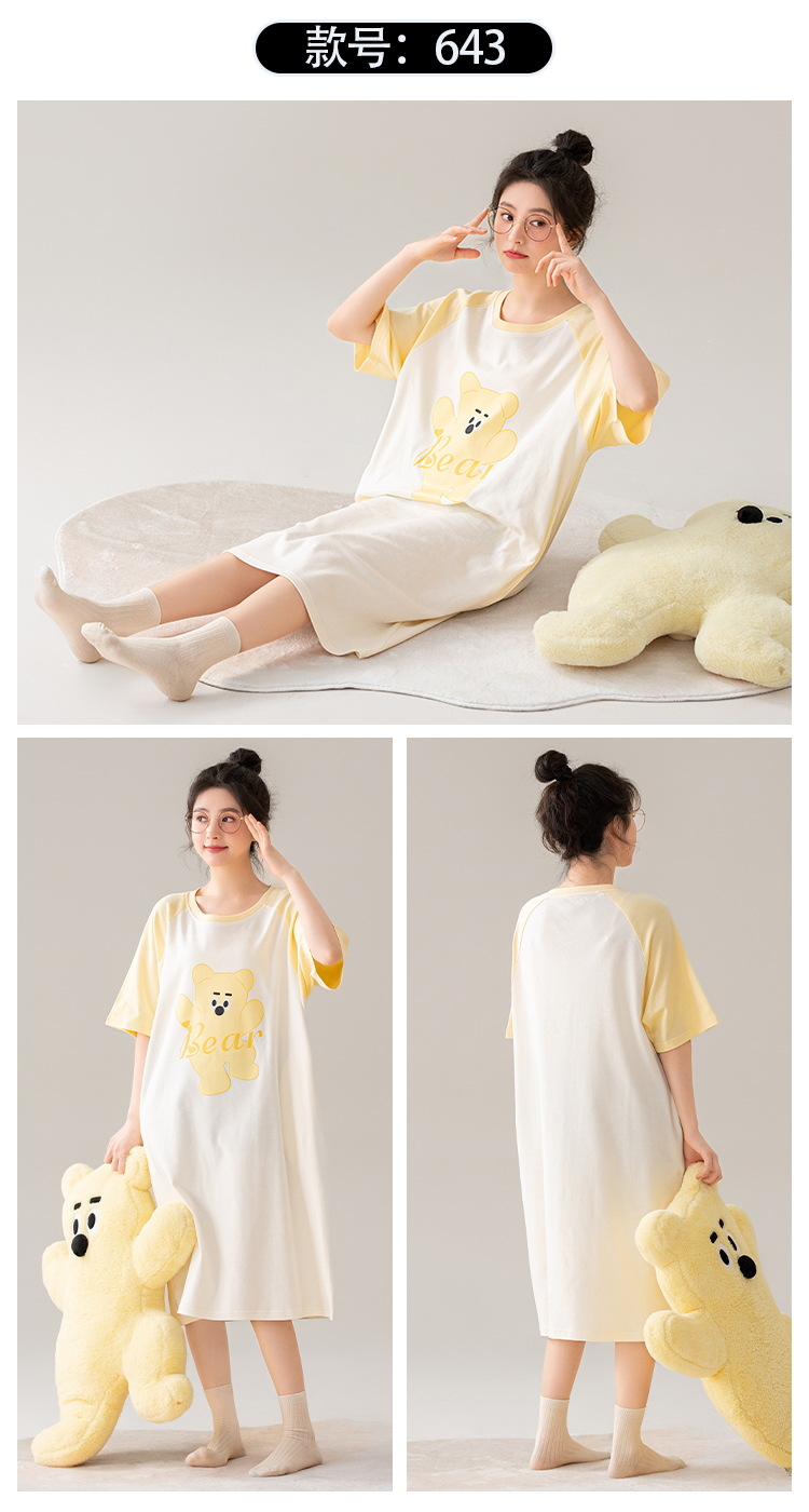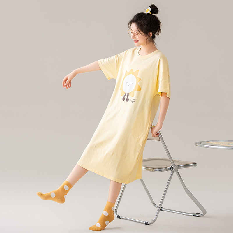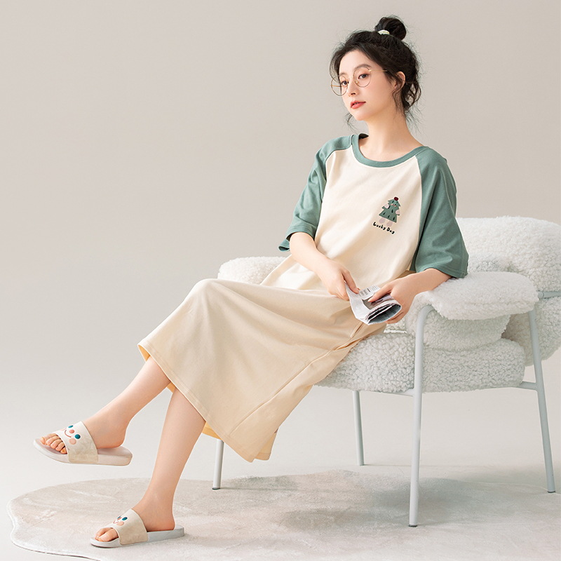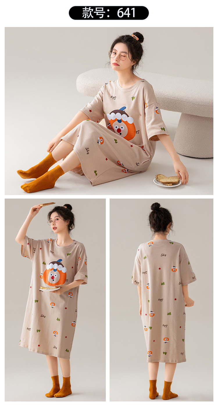 퓨어 코튼 나이트 드레스 여성 여름 2025 새로운 여름 잠옷 반팔 얇은 달콤한 스타일 소녀의 원피스 둥근 목스토어 가기