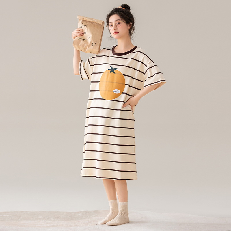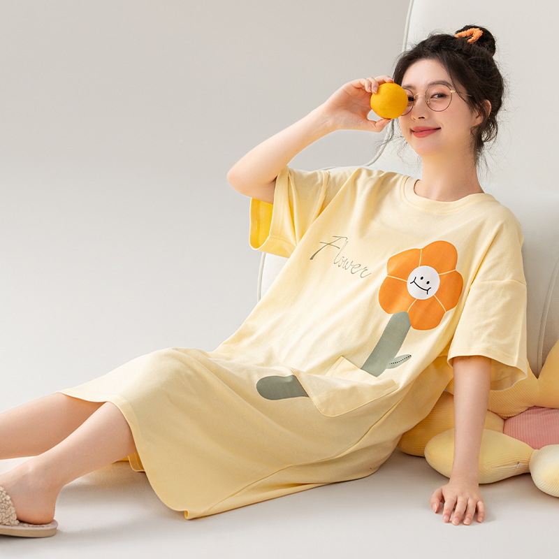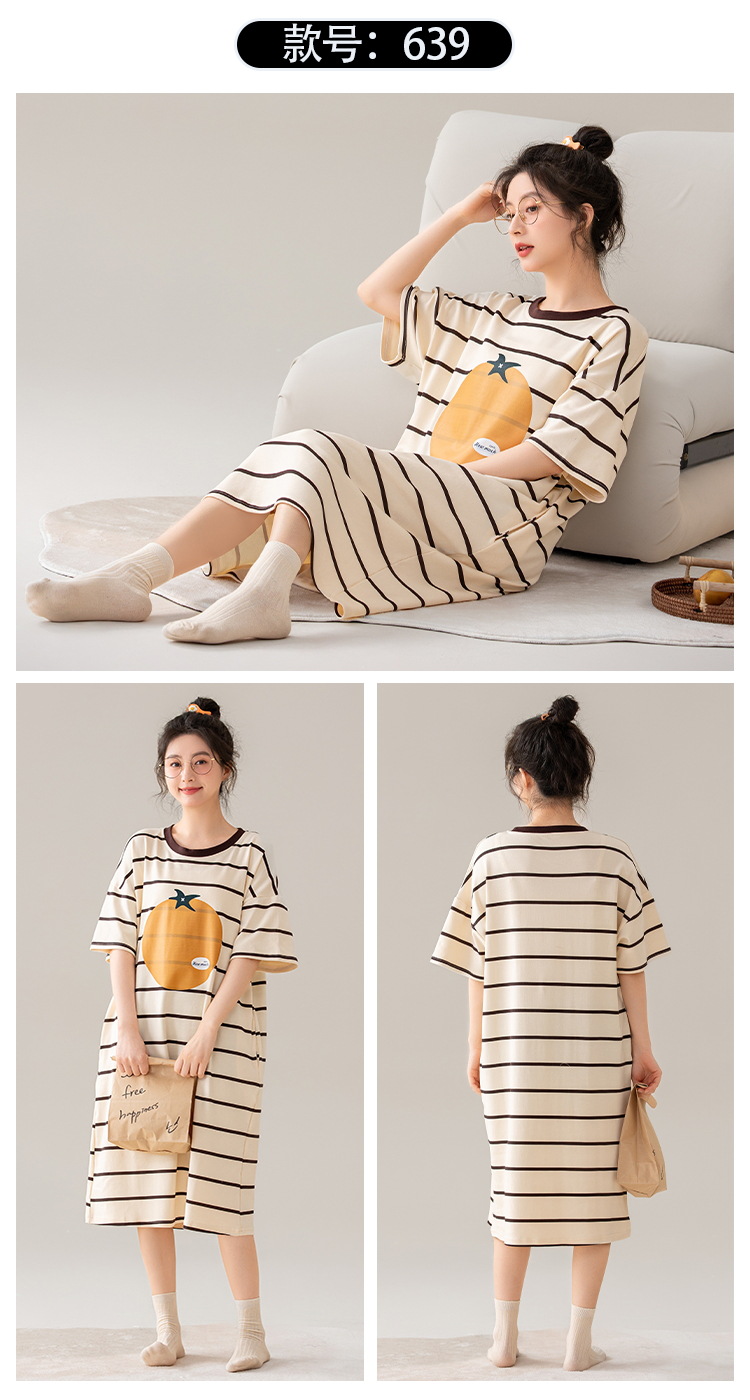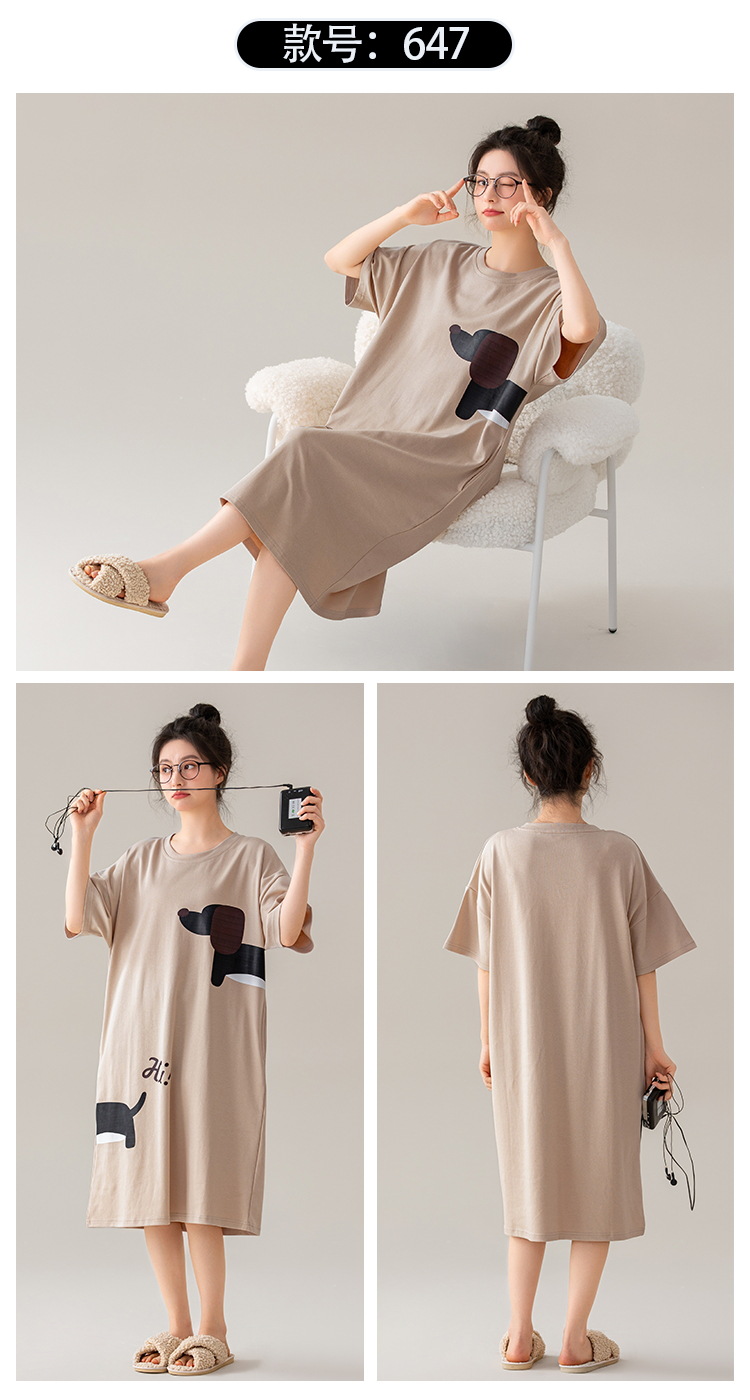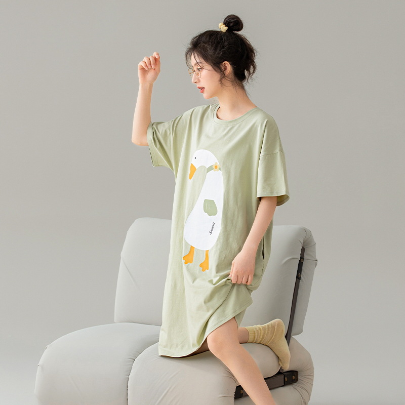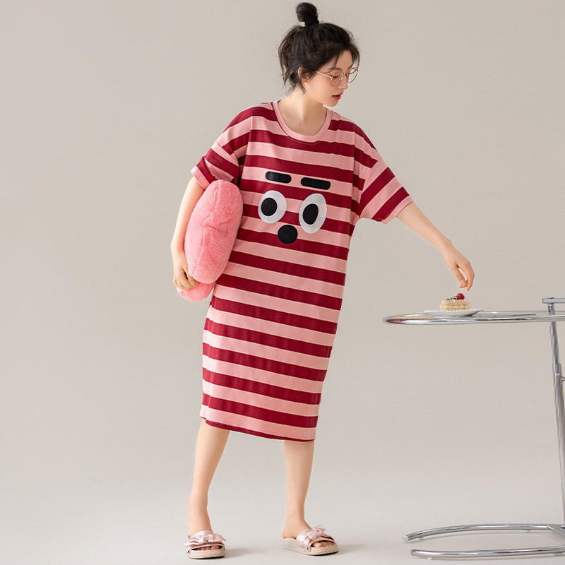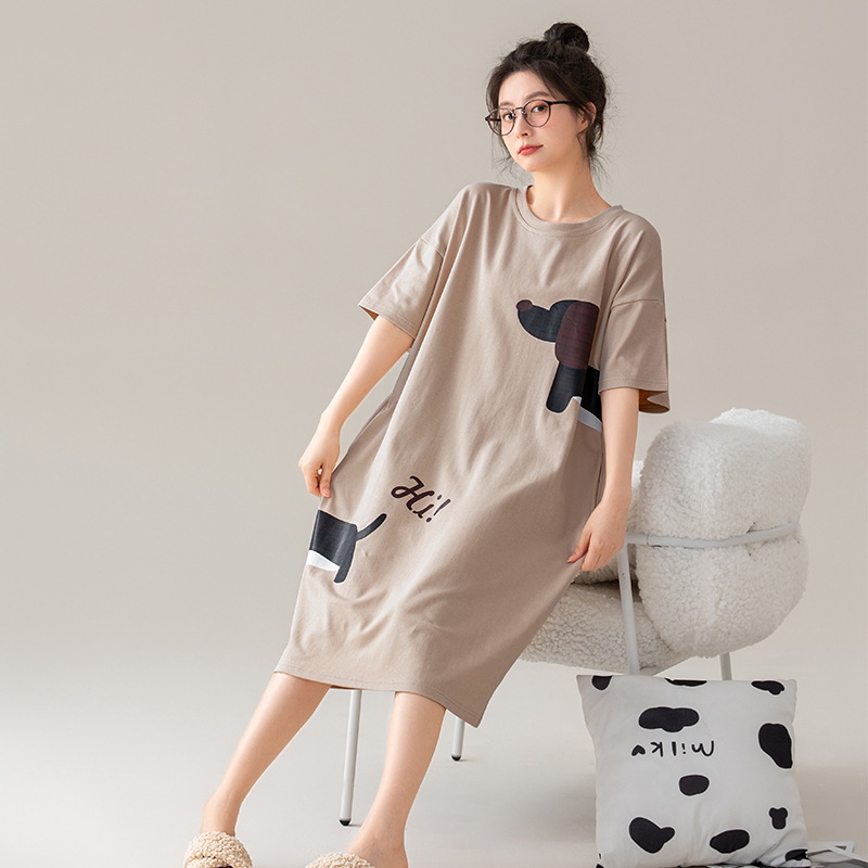 퓨어 코튼 나이트 드레스 여성 여름 2025 새로운 여름 잠옷 반팔 얇은 달콤한 스타일 소녀의 원피스 둥근 목스토어 가기
