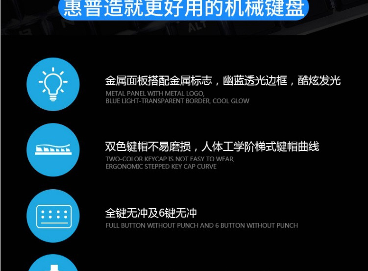 HP GK100F 실제 기계 키보드 스포츠 게임 녹색 축 다채로운 혼합 라이트 USB 유선 키보드를 위해 적당한스토어 가기