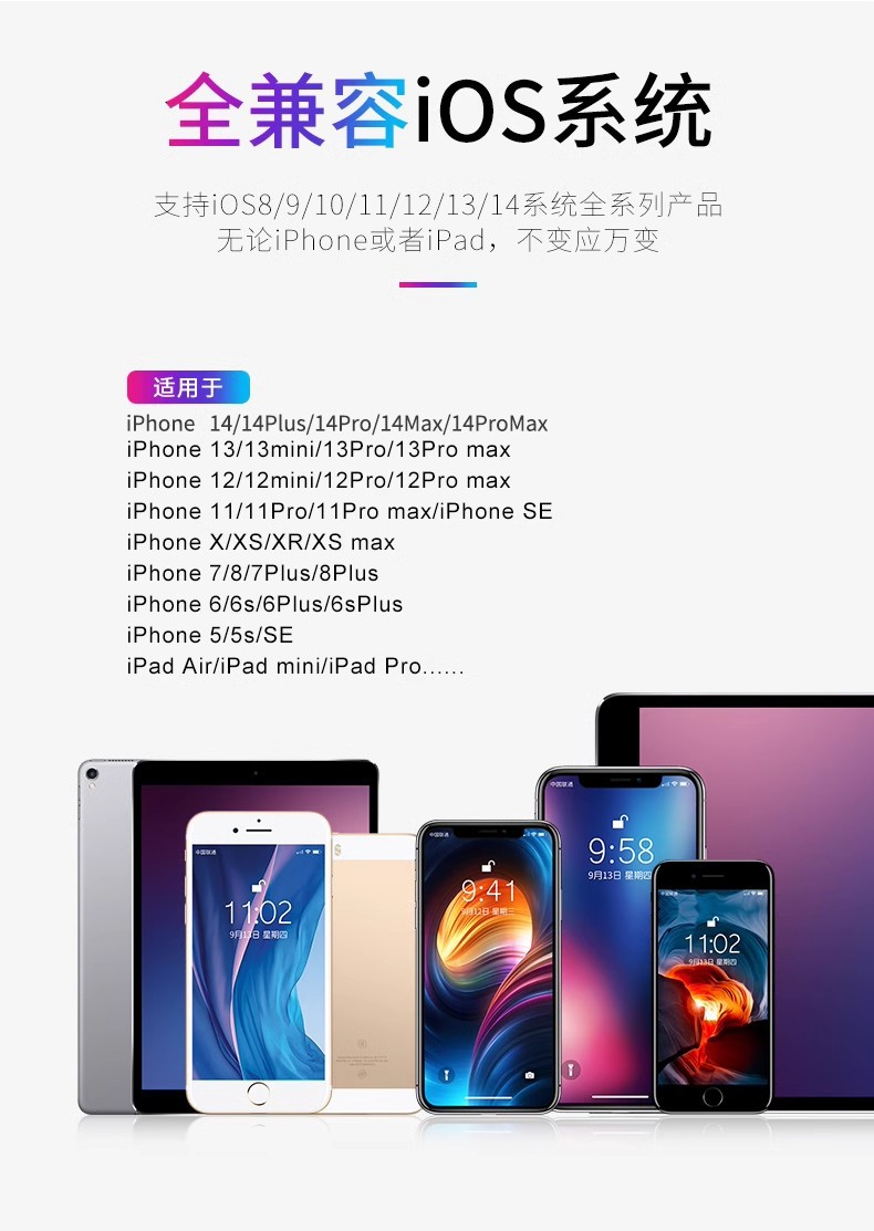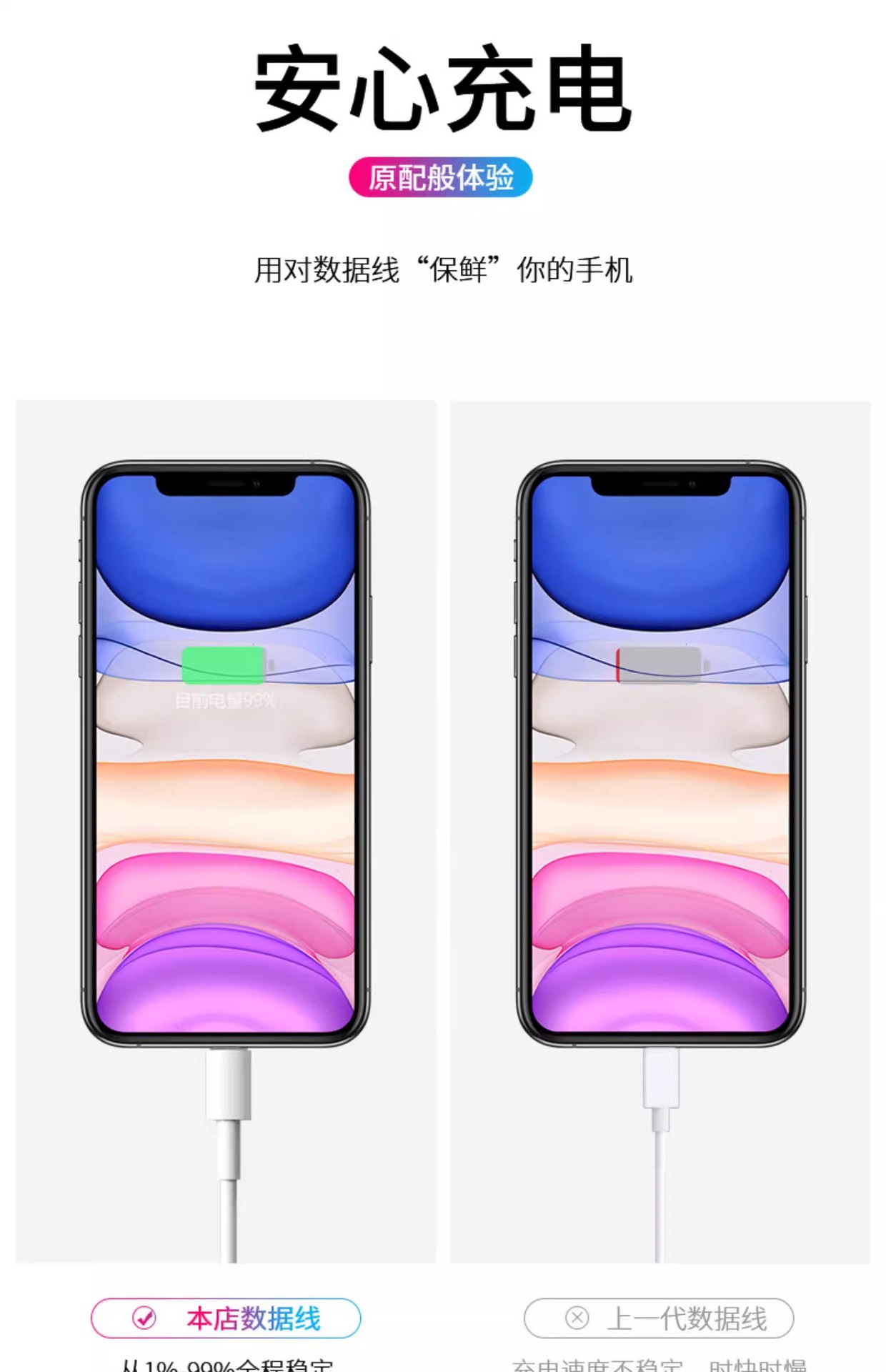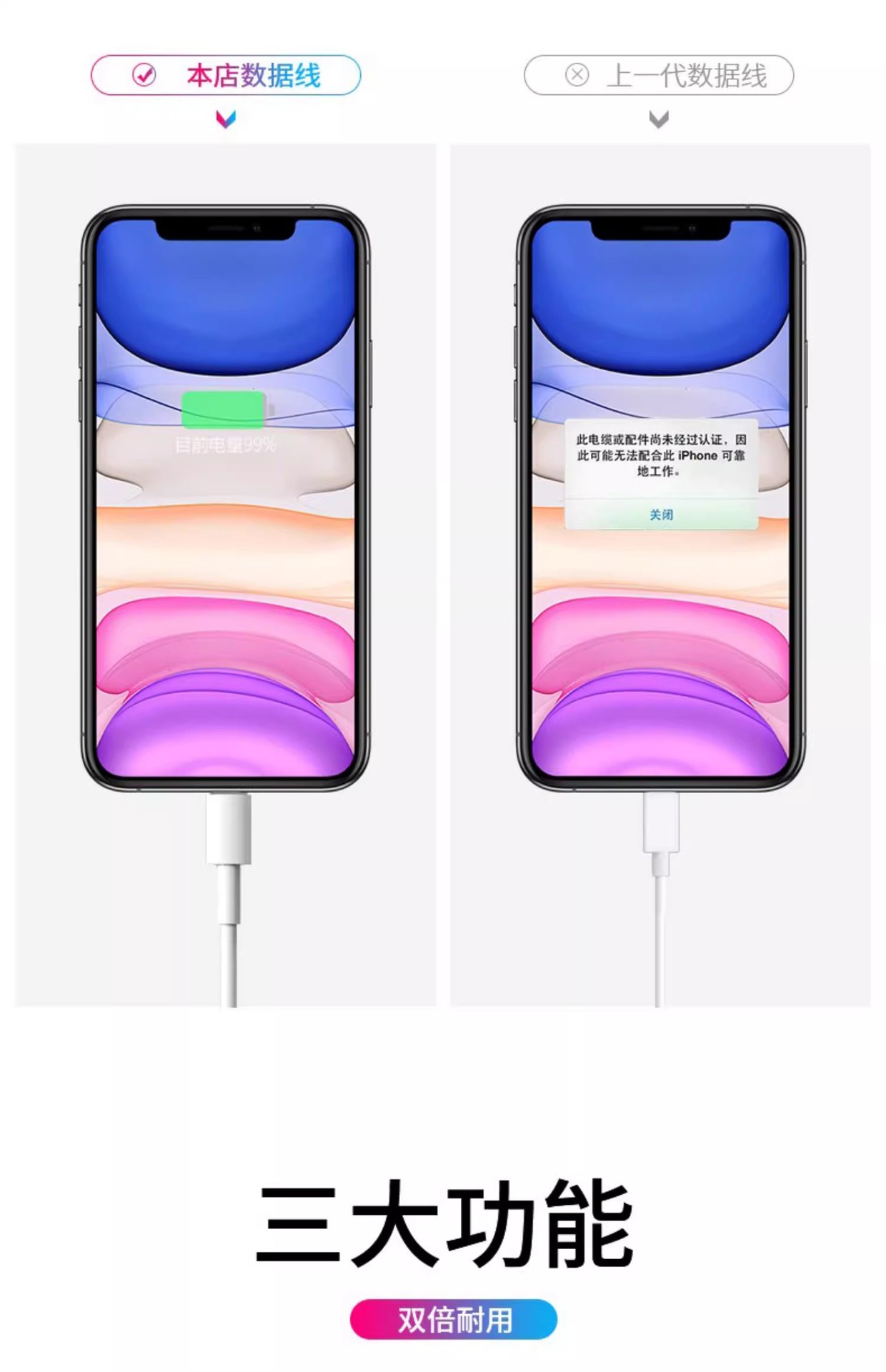 适用苹果USB数据线【认证】 1米 单线【盒装】 50