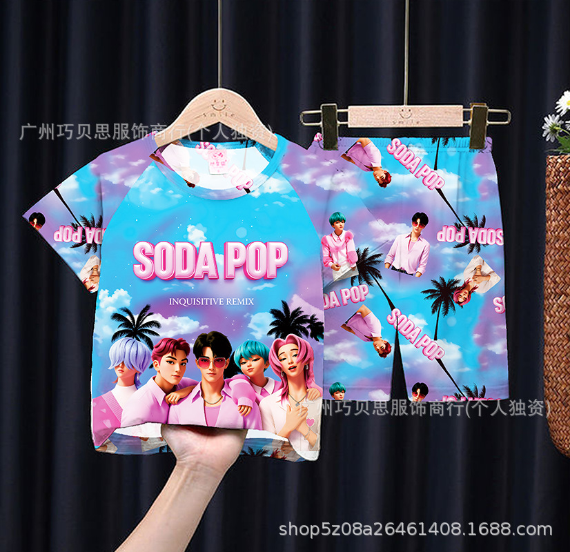 헌터걸즈 여름 아동 잠옷 만화 소녀 반팔 반바지 얇은 소년 중대형 어린이 세트 홈웨어스토어 가기