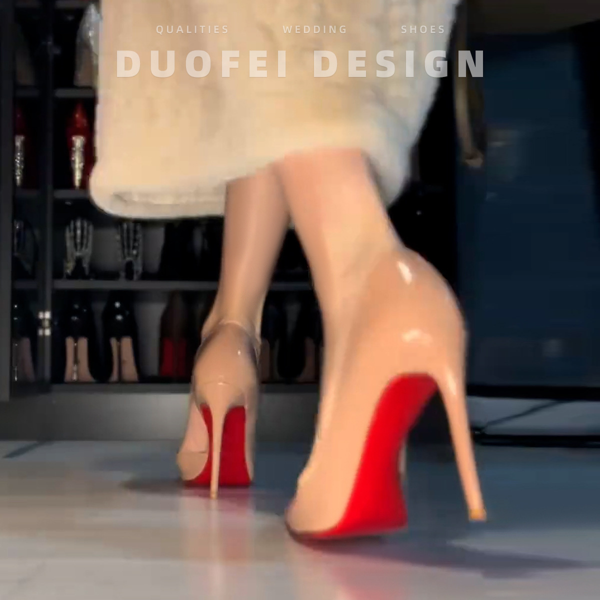 누드 하이힐 여성의 봄과 가을 2025 새로운 도착 스틸레토 숙녀 우아한 특허 가죽 사이드 빈 섹시한 레드 밑창 신발 싱글 레이어 신발