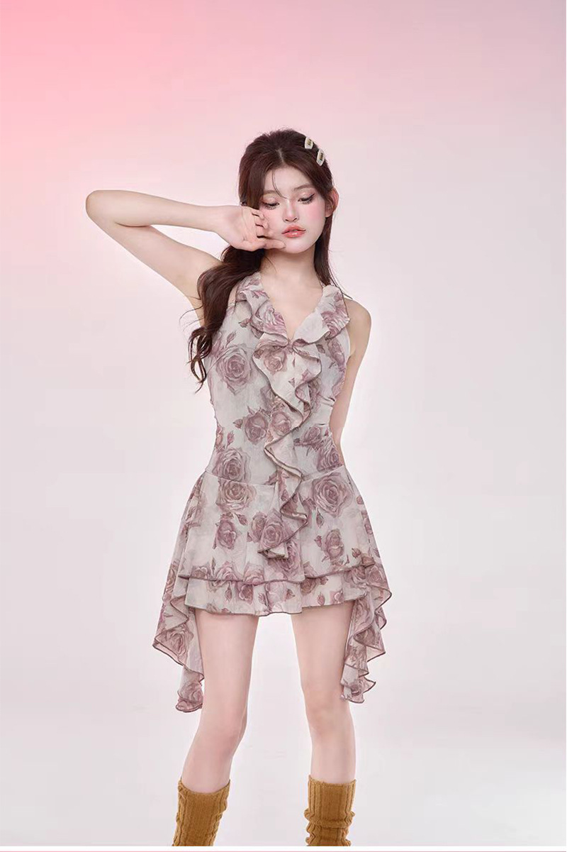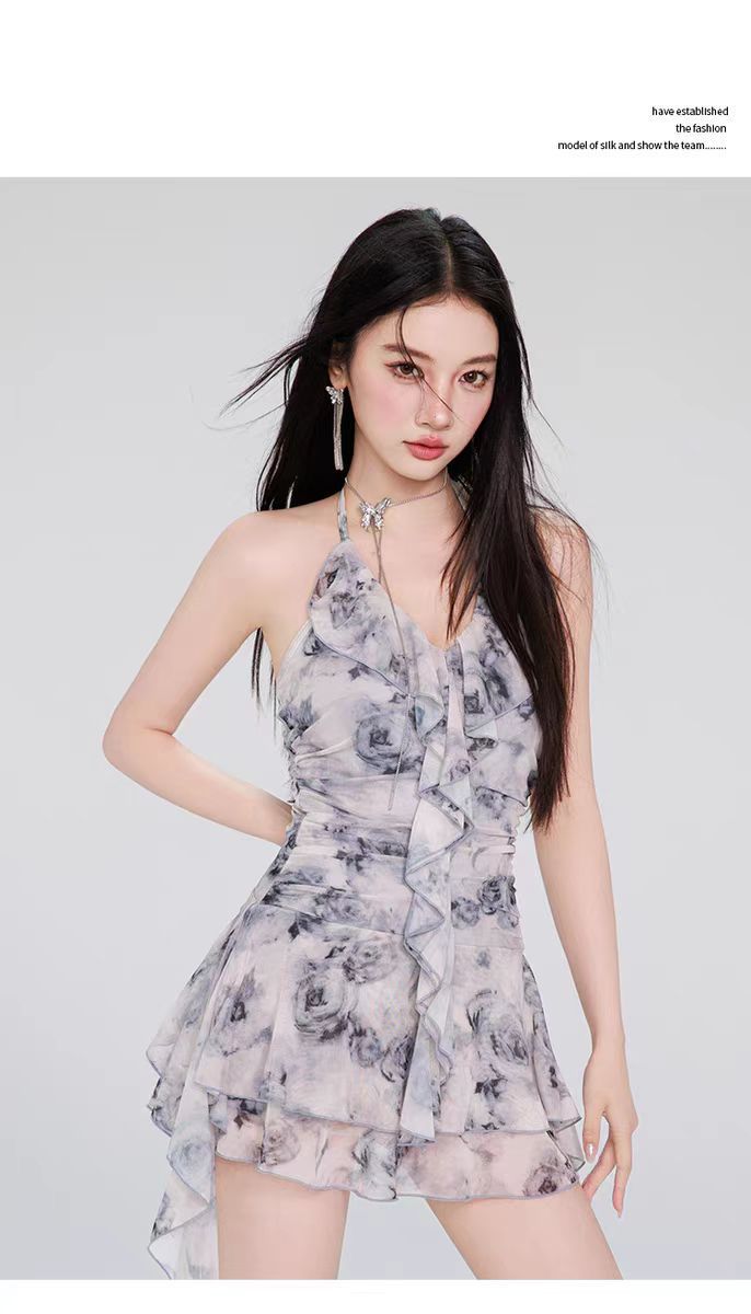 2025년 신상 고급스러운 원피스 수영복, 여성스러운 꽃무늬 스커트 스타일, 배를 가려주는 슬림핏 온천 수영복스토어 가기