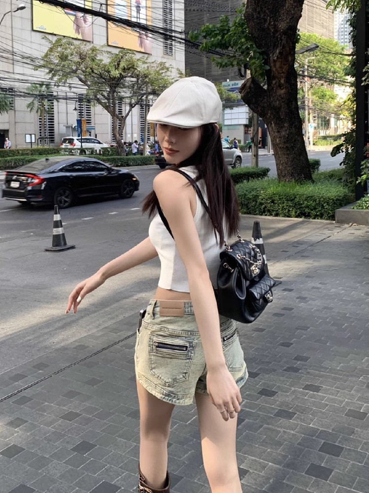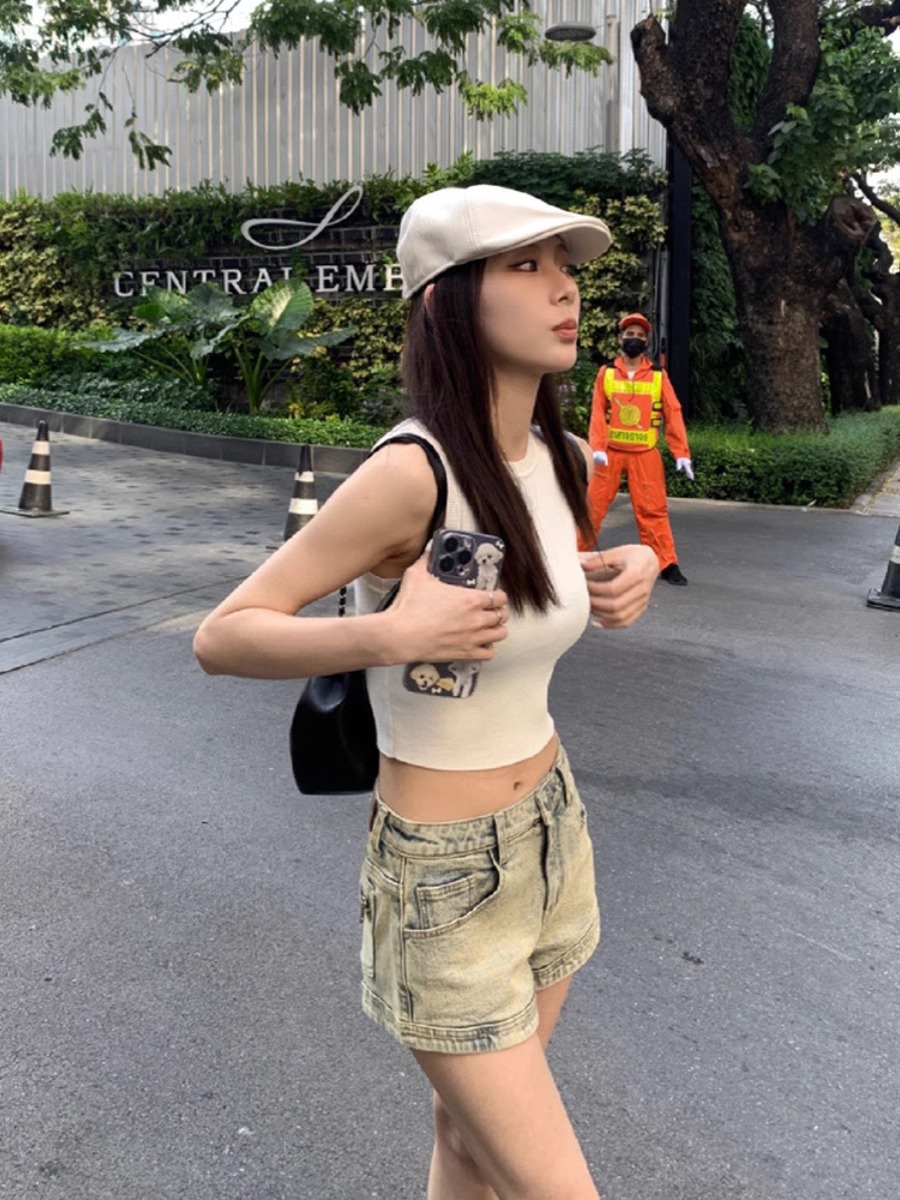 빈티지 세탁 올드 데님 반바지 여자 여름 2025 새로운 스트레이트 다리 바지 스파이스 걸스 하이 웨이스트 슬리밍 올 매치 핫 팬츠스토어 가기