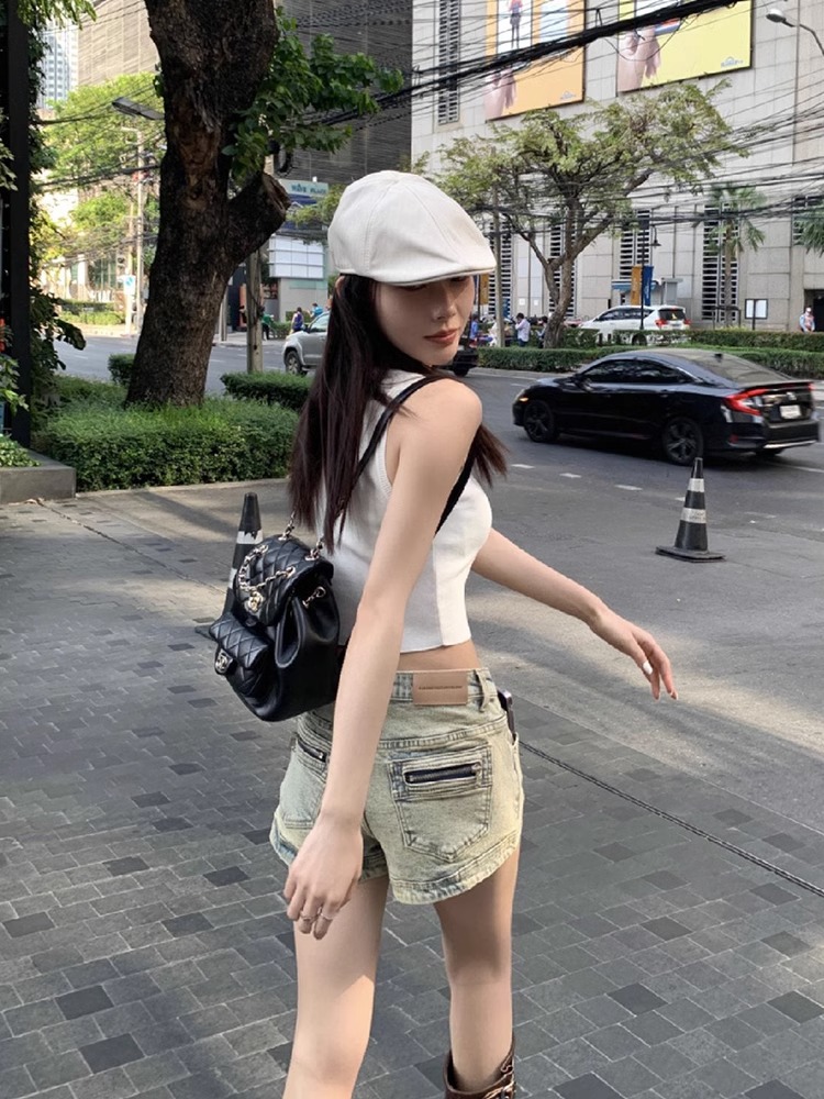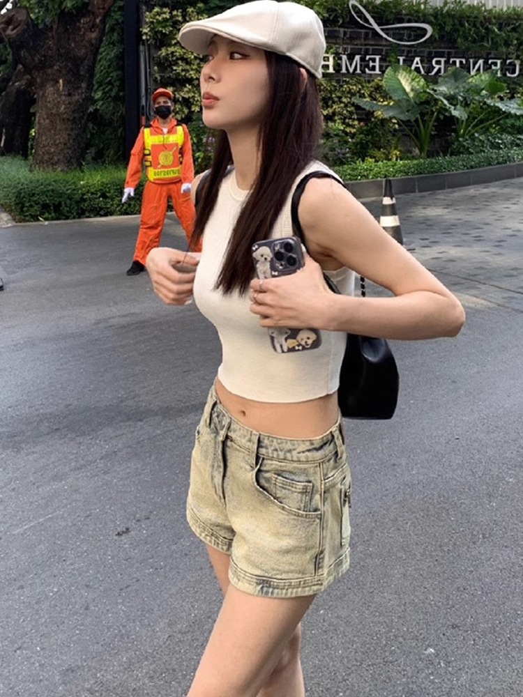 빈티지 세탁 올드 데님 반바지 여자 여름 2025 새로운 스트레이트 다리 바지 스파이스 걸스 하이 웨이스트 슬리밍 올 매치 핫 팬츠
