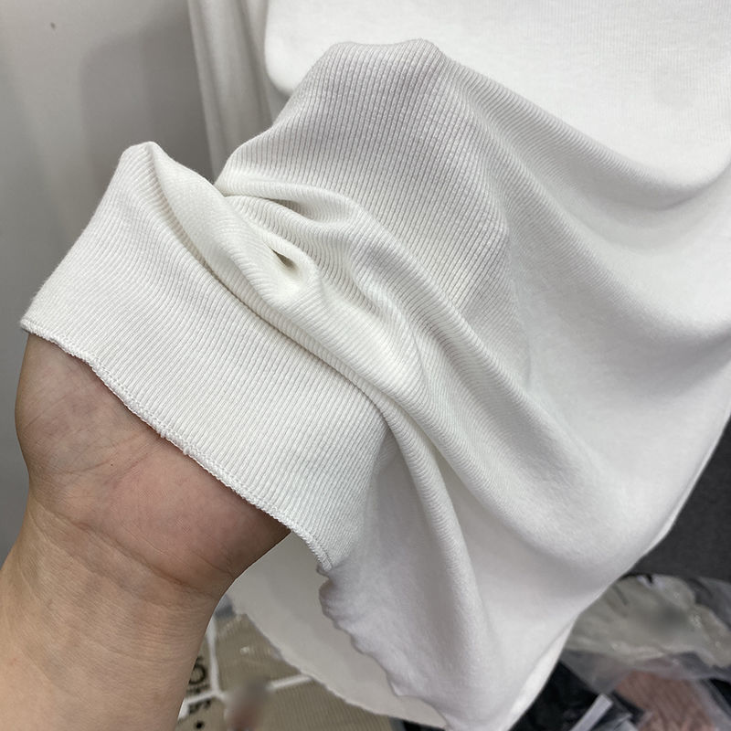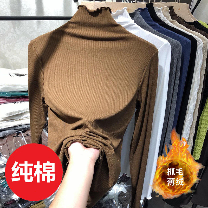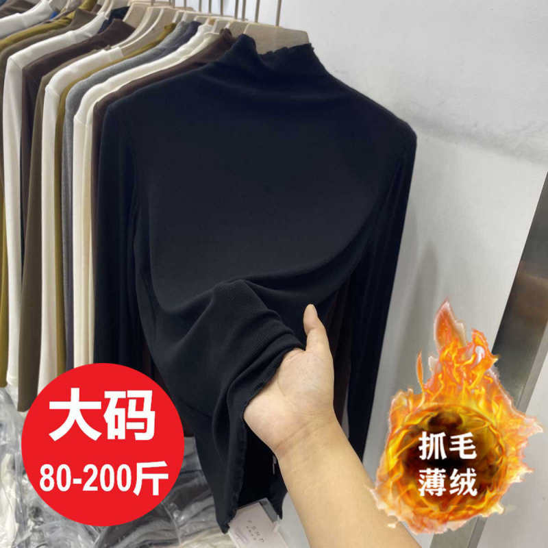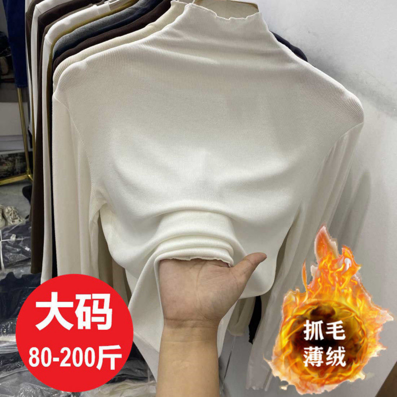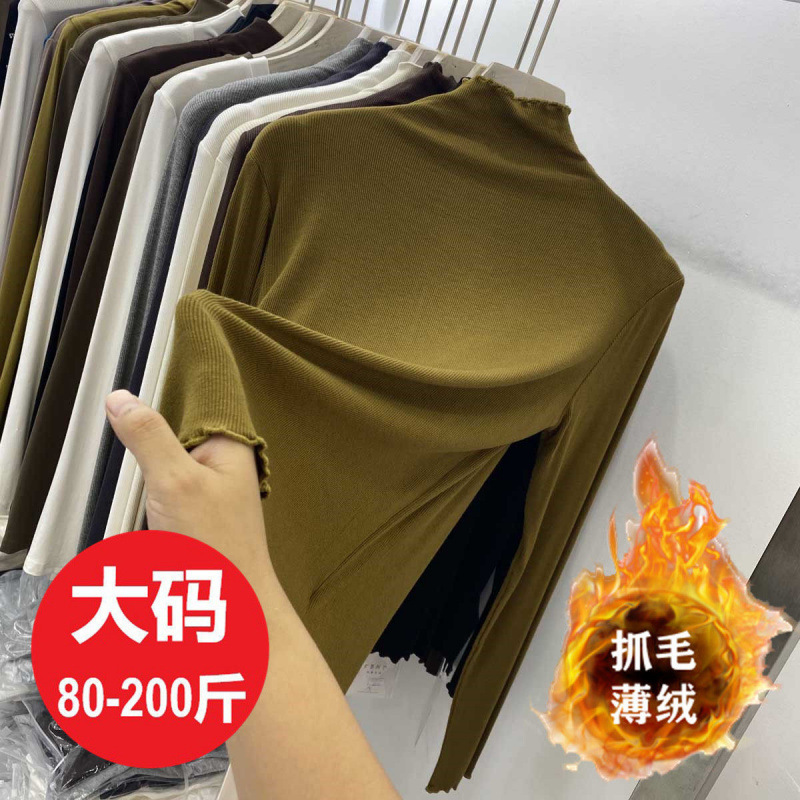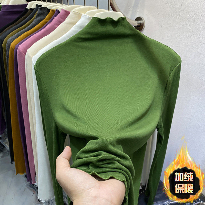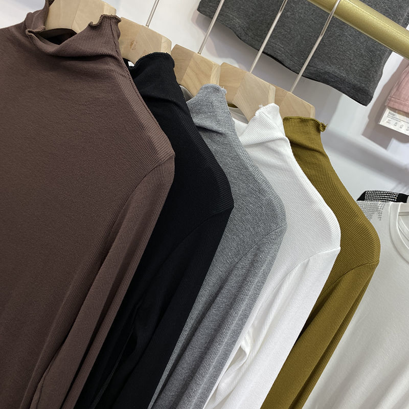 플러스 사이즈 유럽 용품 세미 하이 칼라 나무 이어 엣지베이스 셔츠 여성의 가을 착용 외국식 얇은 실 코튼 스트레치 긴 소매 티셔츠스토어 가기