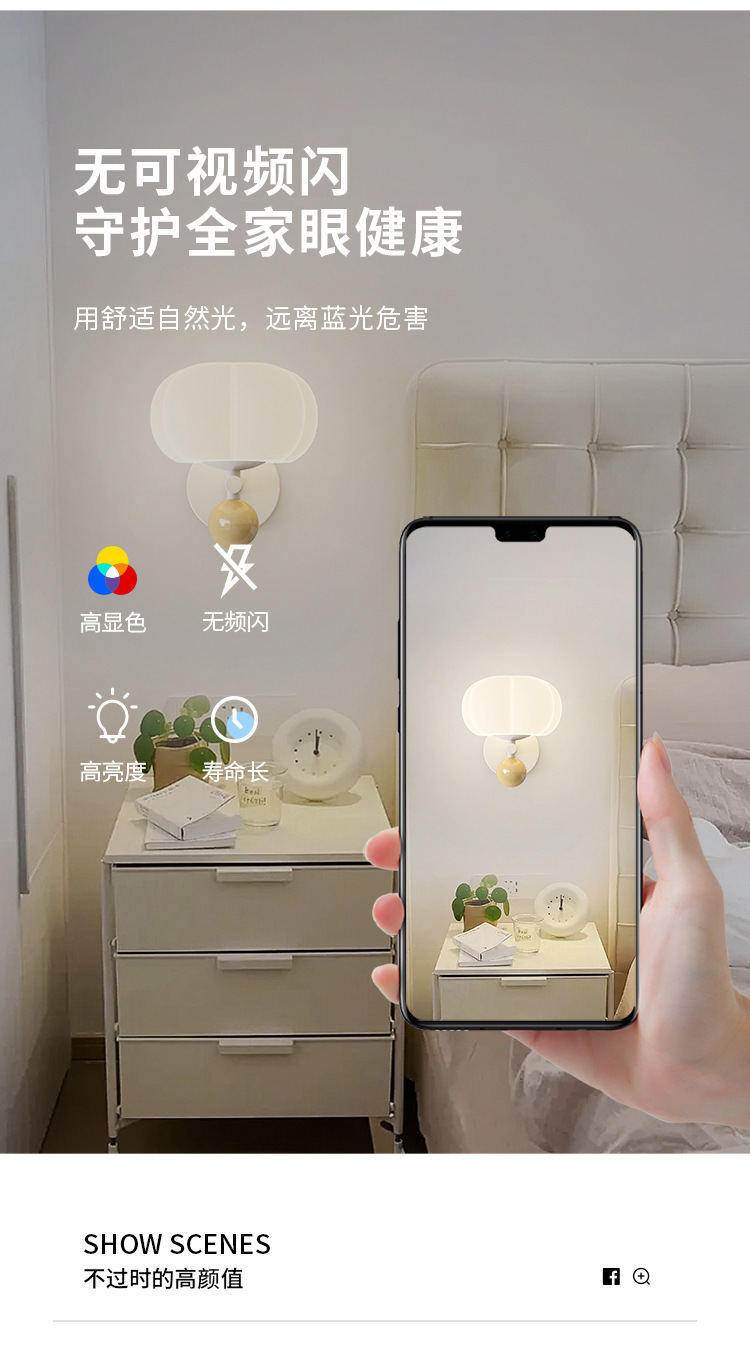 크림 스타일 침실 침실 작은 샹들리에 현대 간단한 마스터 침실 벽 램프 인터넷 인기있는 예술 샹들리에 No스토어 가기