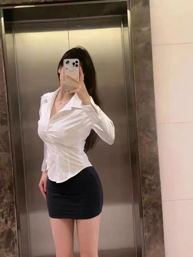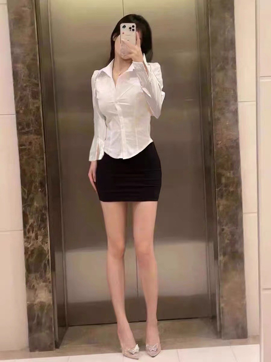 • 슈트 긴팔 셔츠 + 블랙 힙 스커트 02 프리 블랙 실크