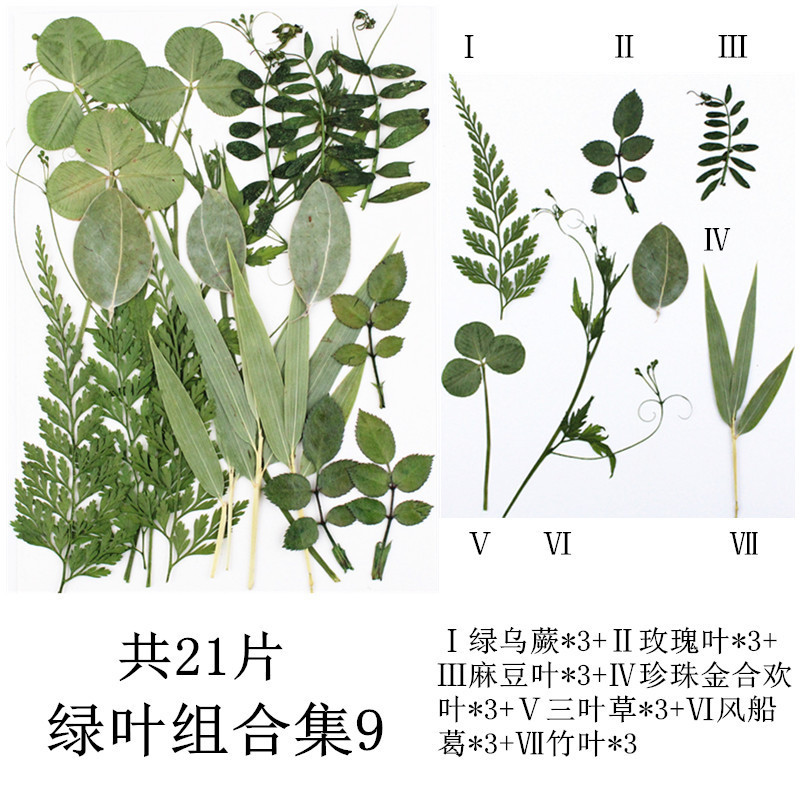 녹색 잎 조합 패키지 실제 잎 식물 표본 스티커 말린 꽃 장식 말린 잎 재료 패키지 촬영 소품스토어 가기