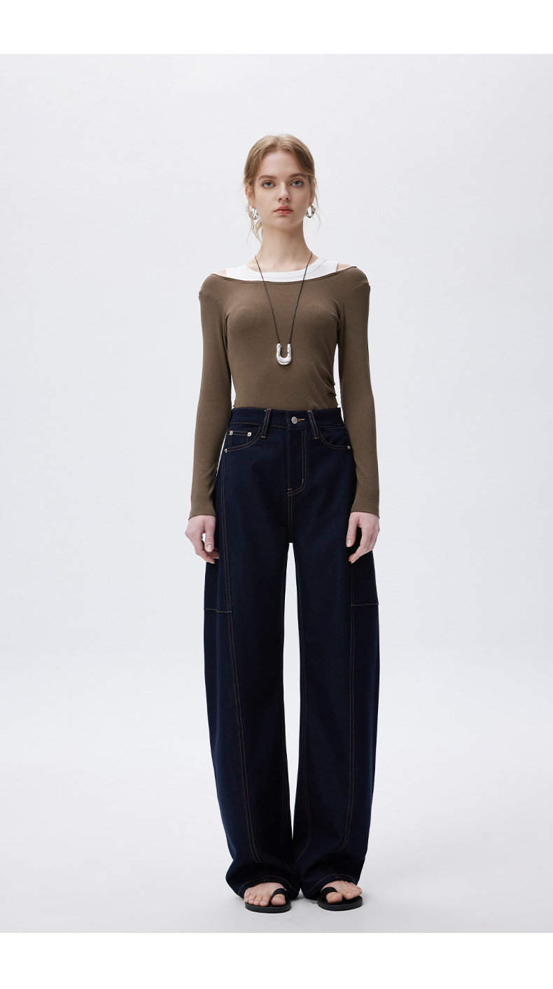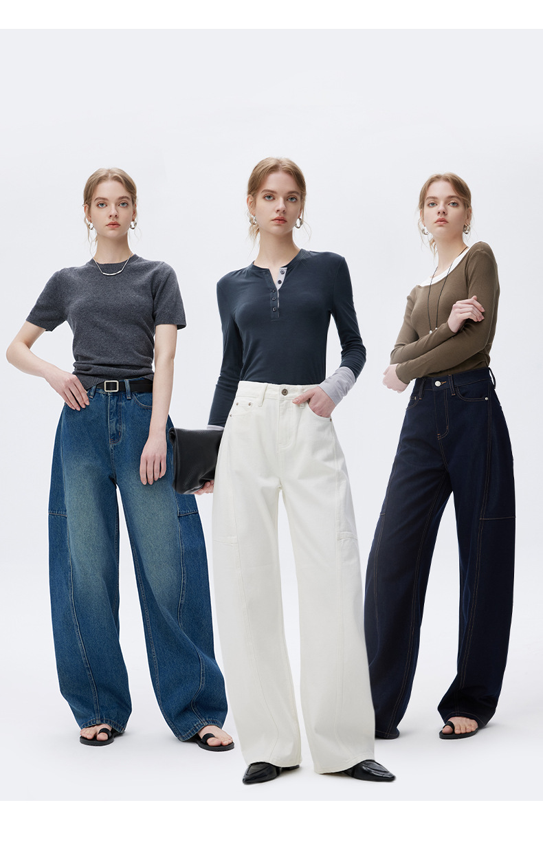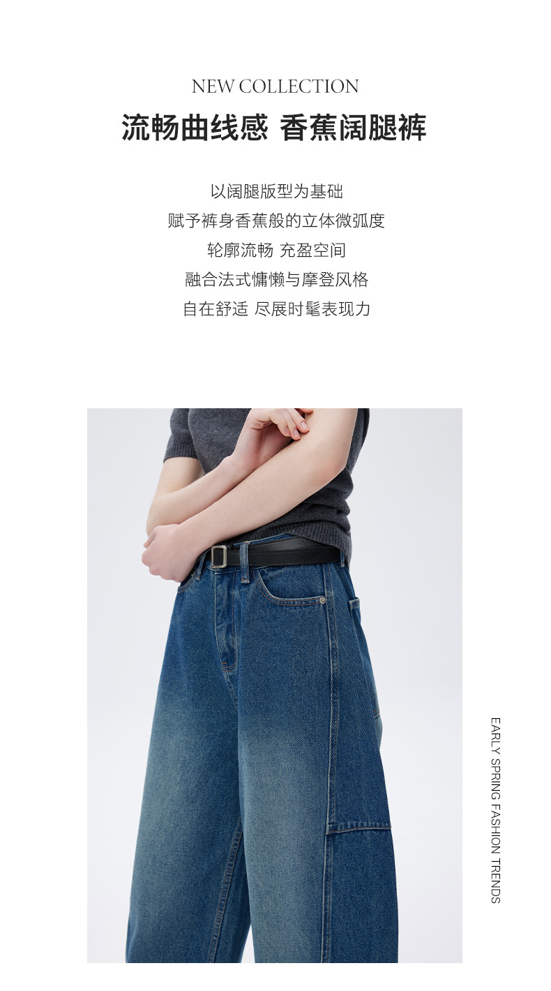 바나나 팬츠 2025 가을 데님 팬츠 여성용 신장 롱벨벳 코튼 고급 패션 루즈핏 슬림 와이드 레그 칼모양 팬츠스토어 가기