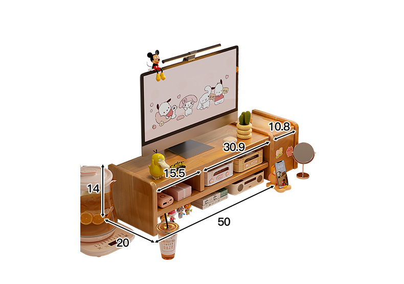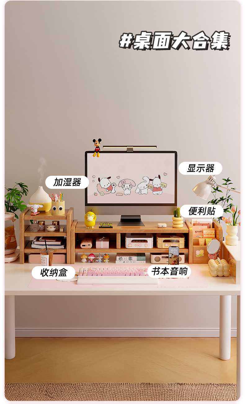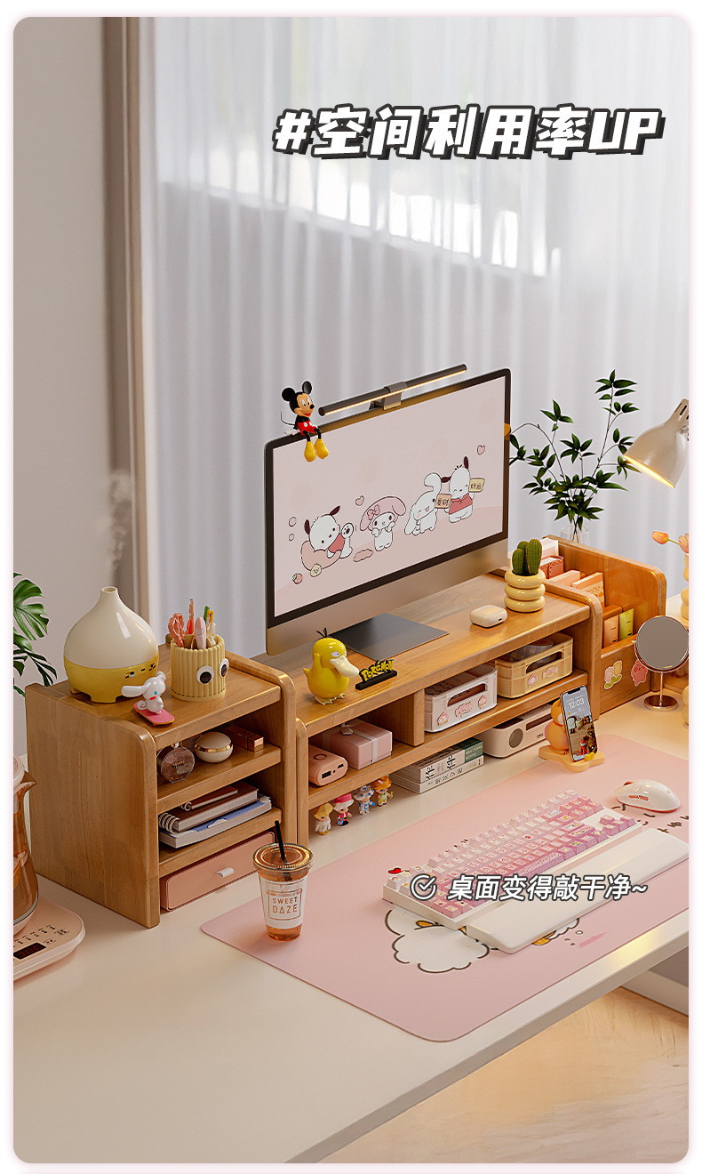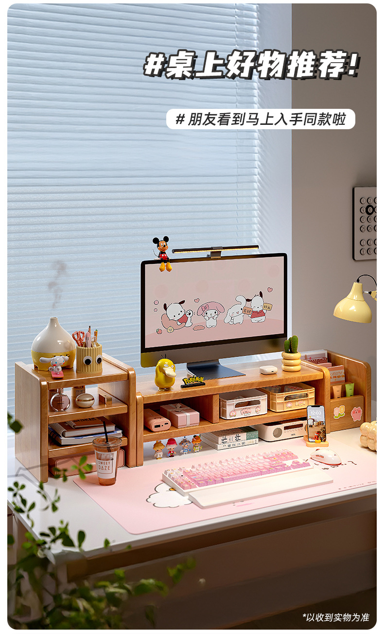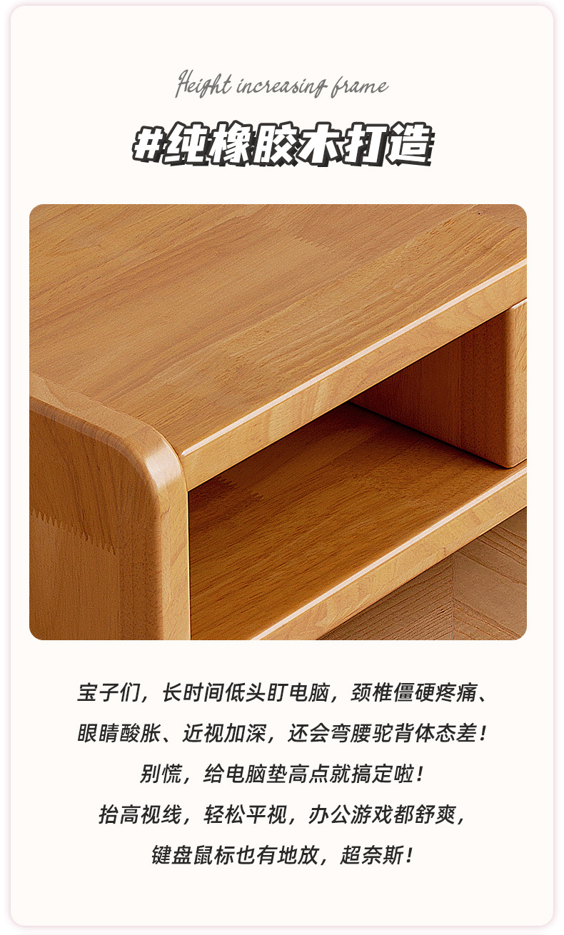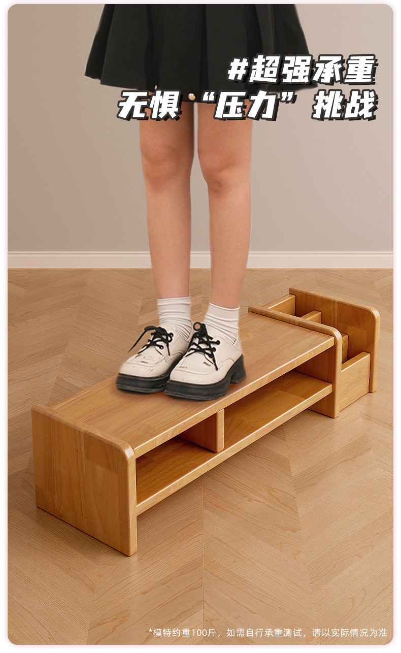 全实木台式电脑显示器增高架家用办公室桌面置物架工位展示收纳架