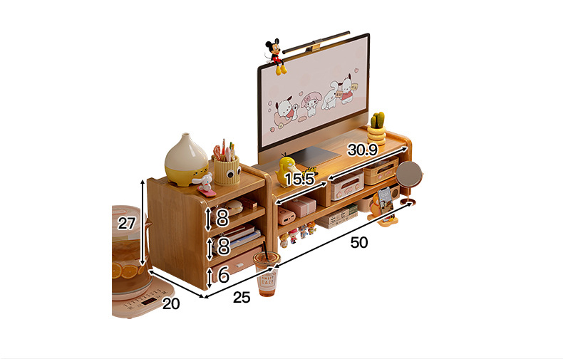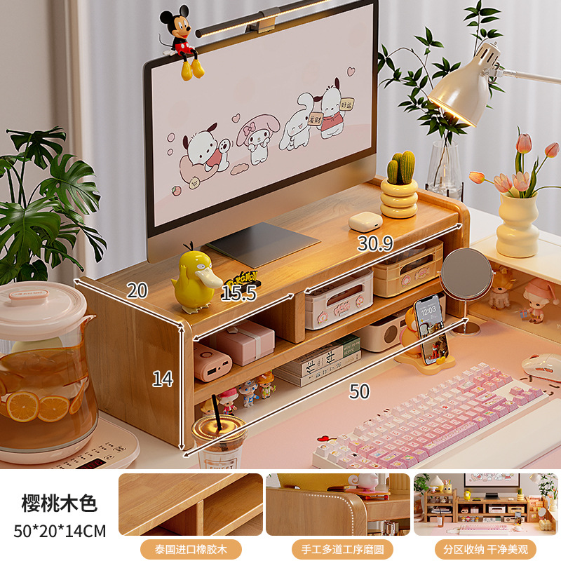 모든 솔리드 우드 데스크탑 컴퓨터 모니터 높은 랙 홈 오피스 데스크탑 스토리지 랙 스테이션 디스플레이 스토리지 랙