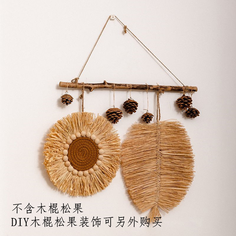 거실과 홈스테이의 배경 벽에 자연 짠 라피 잔디 벽 장식 인터넷 인기있는 노르딕 인 교수형 장식 아트스토어 가기