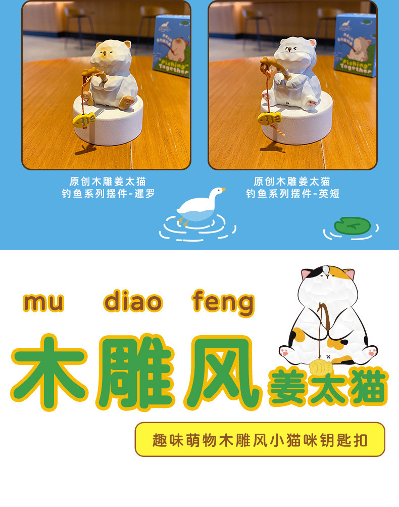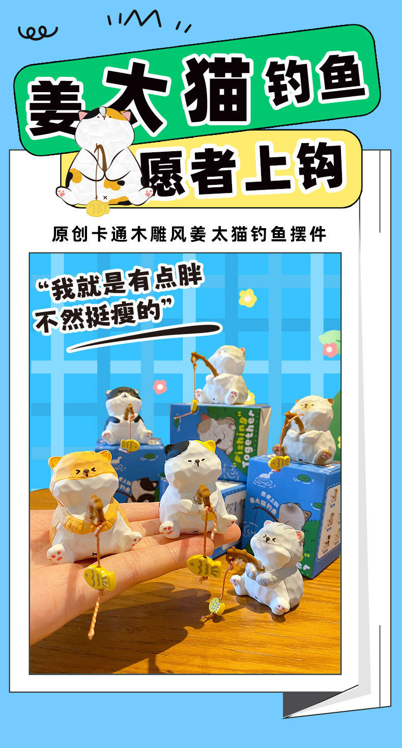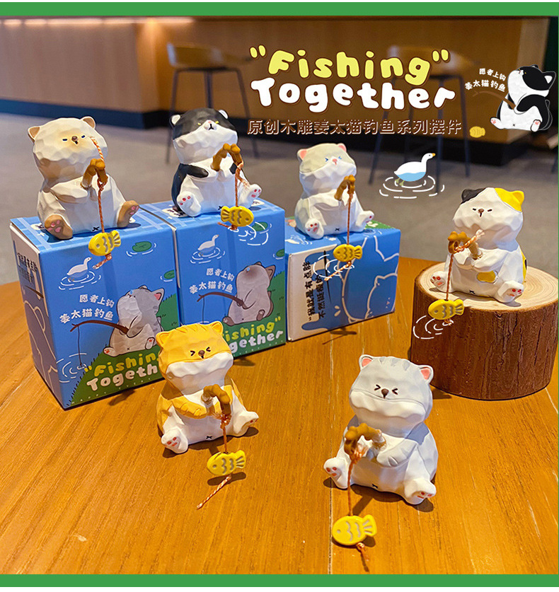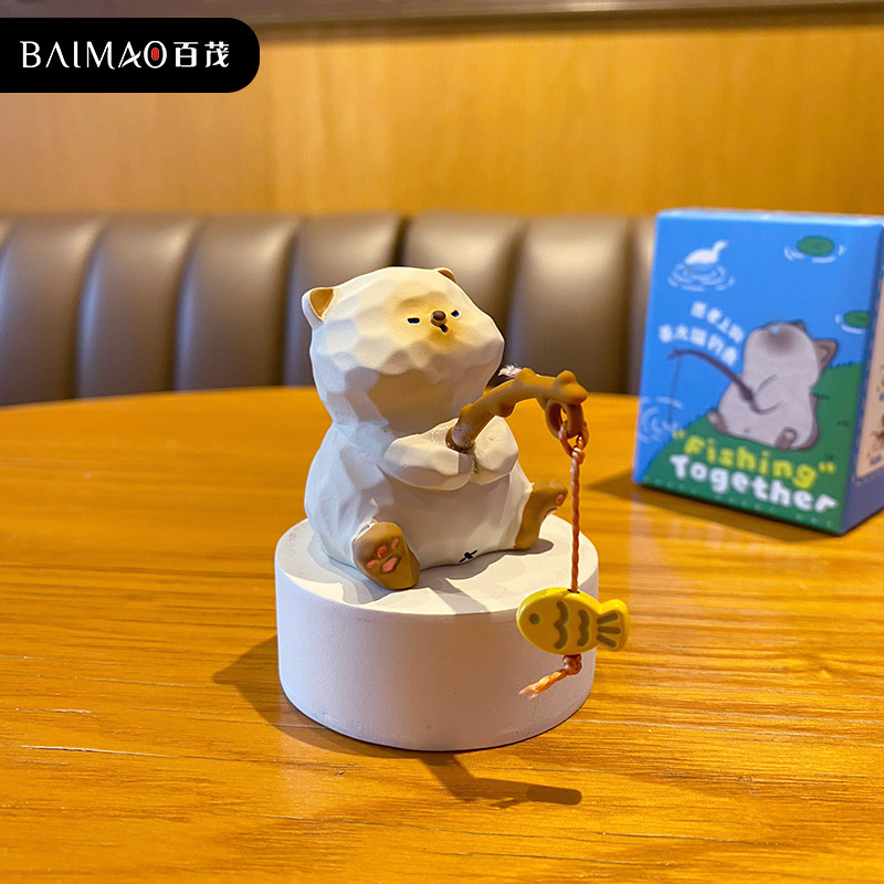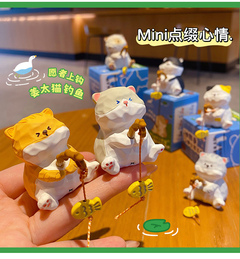 Baimao 오리지널 재미 있은 Jiang Tai 고양이 낚시 수지 작은 장식품 유행 자동차 장식품 사무실 손으로 만든 장식품
