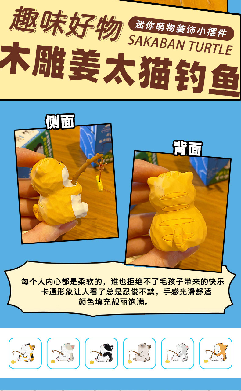 • 오리지널 나무 조각 진저 타이 고양이 낚시 시리즈 장식품-소