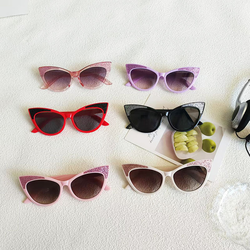패션 고양이 눈 고급 플래시 맞춤형 어린이 선글라스 국경 간 유럽과 미국 어린이 야외 선글라스 선글라스스토어 가기