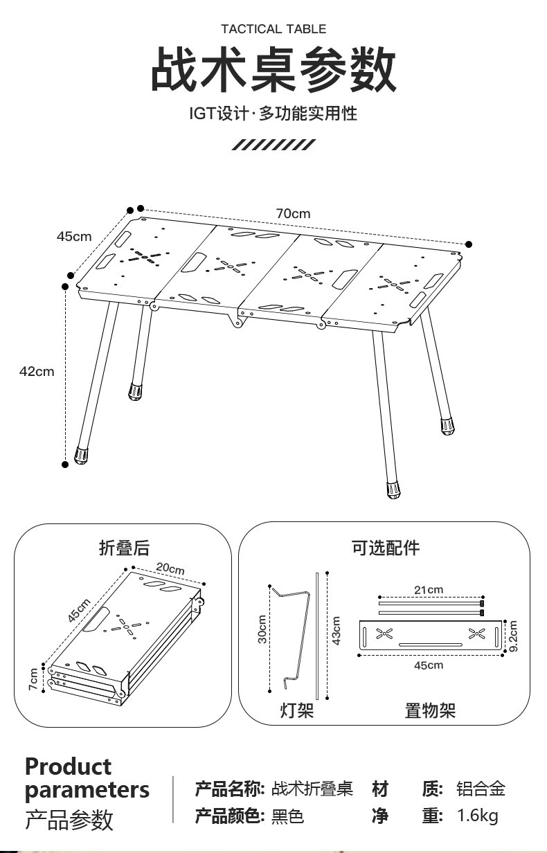 야외 알루미늄 합금 4 배 IGT 전술 테이블 휴대용 캠핑 테이블 다기능 IGT 접이식 테이블 BBQ 피크닉 테이블