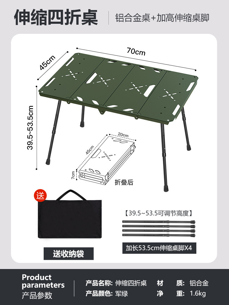 • [접이식 + 알루미늄 합금] 택티컬 60% off 테이블 밀리터리 그린(수납 가방 포함)