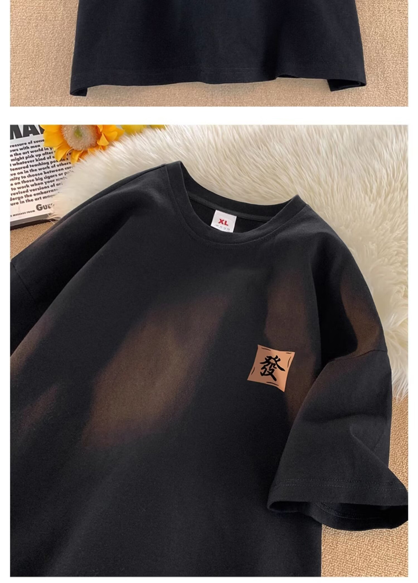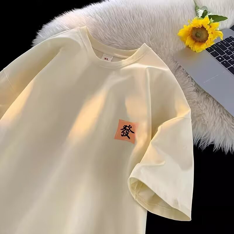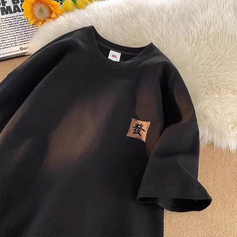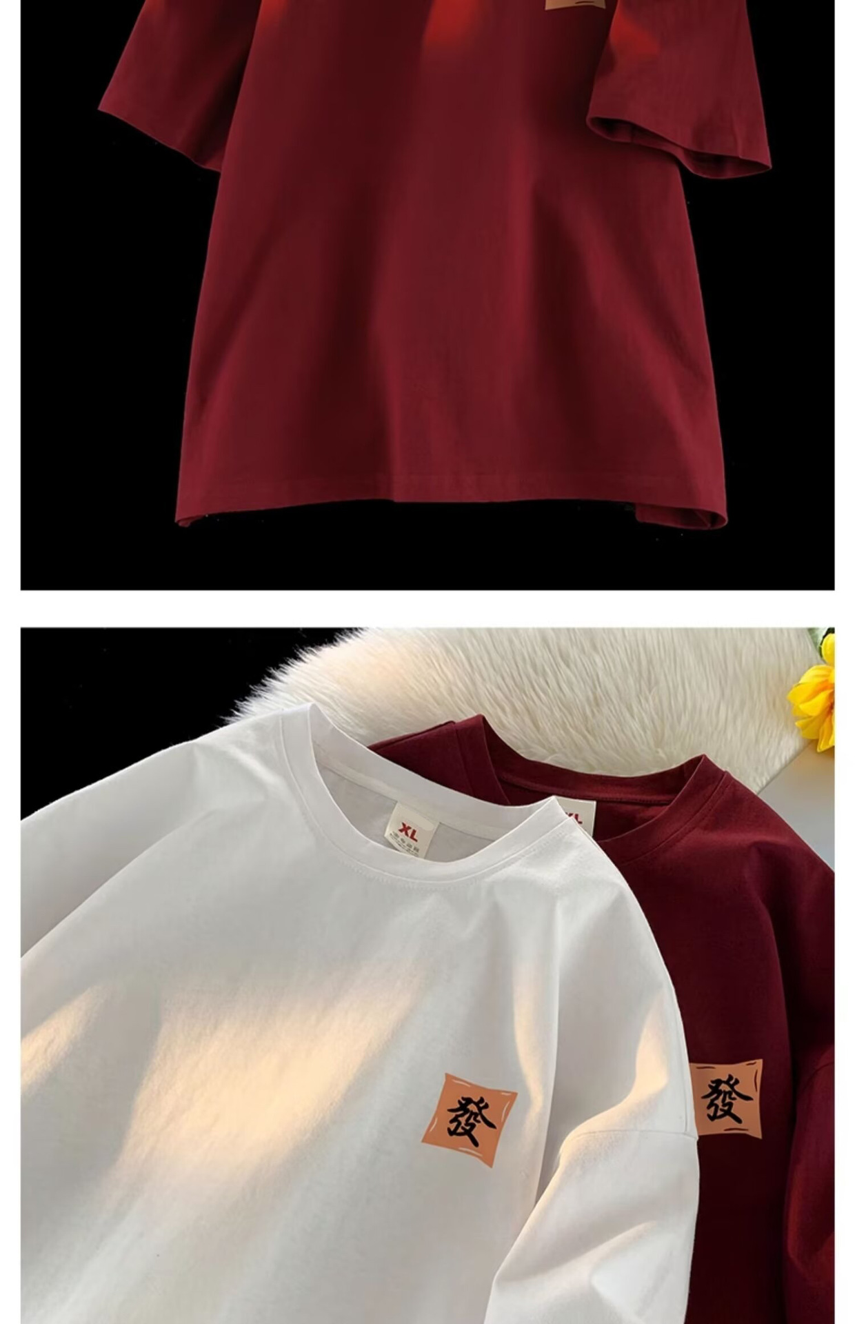 Combed Cotton 중국 스타일 반팔 티셔츠 남성 대외 무역 여름 전국 트렌디 루즈 커플 올 매치 버건디 라운드 넥 티셔츠스토어 가기