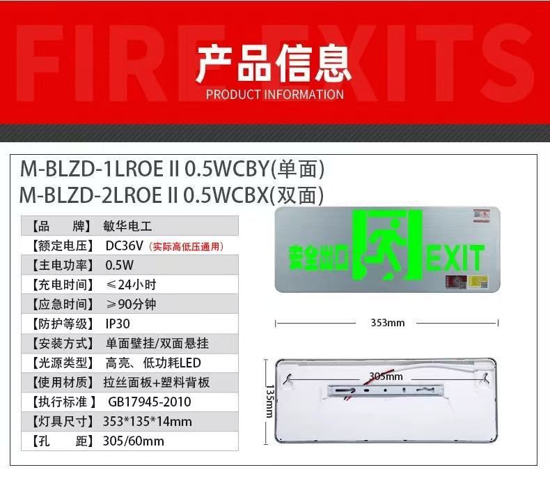 Minhua A 형 화재 대피 표시등 DC36v 비상 안전 출구 표지등 높고 낮은 전압 일반 비상 조명