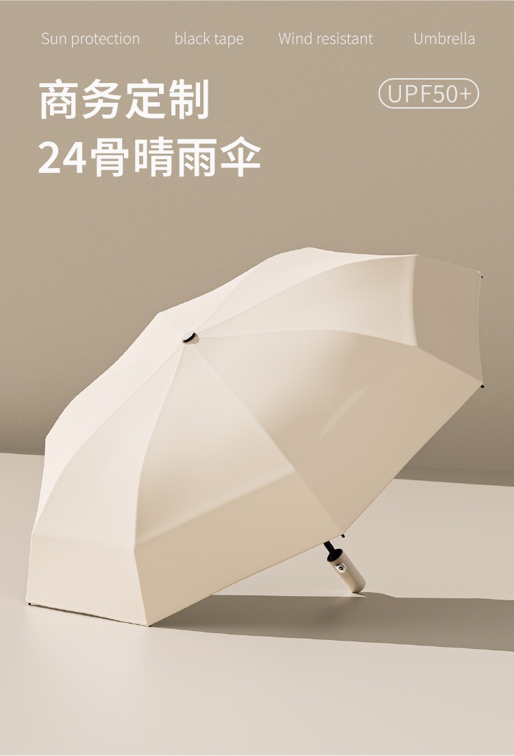 자동 24 뼈 우산 비즈니스 남성용 검은 접착제 햇빛 우산 접히는 우산 고급 감각 도매 맞춤형 태양 우산