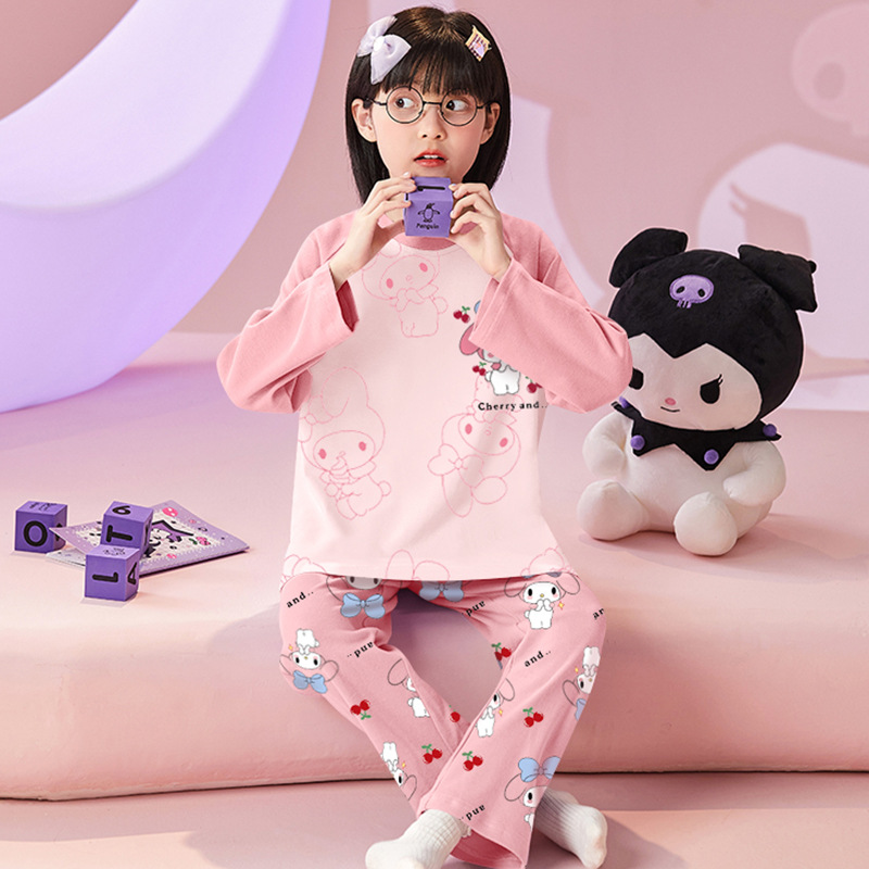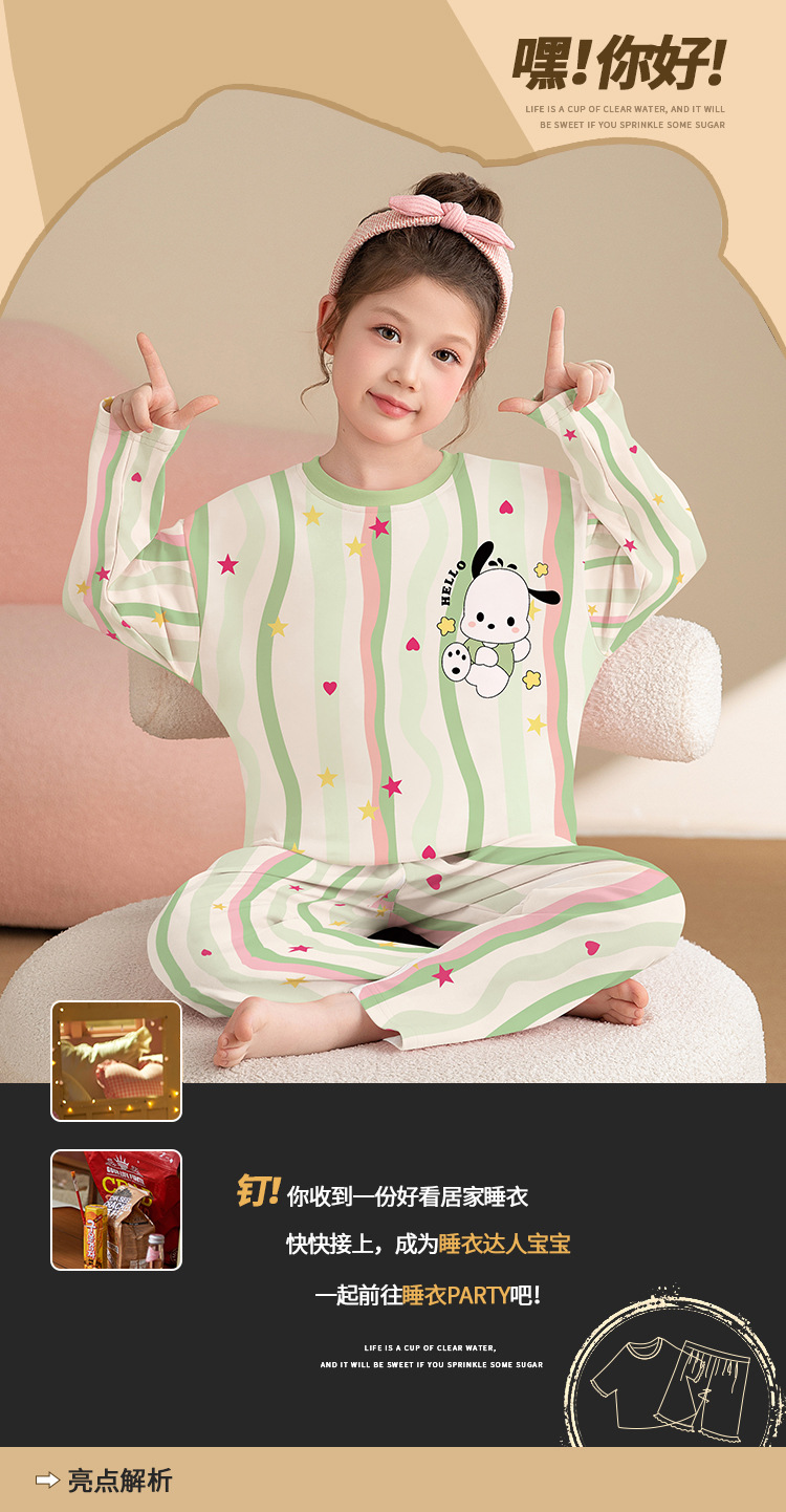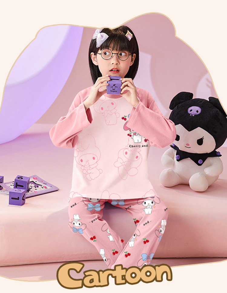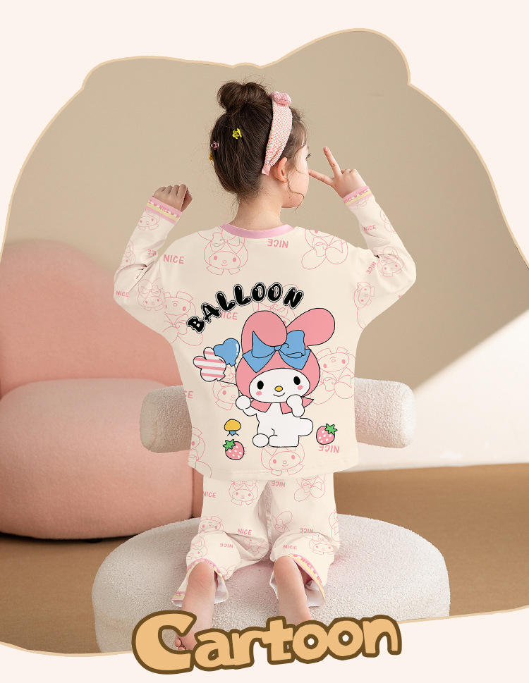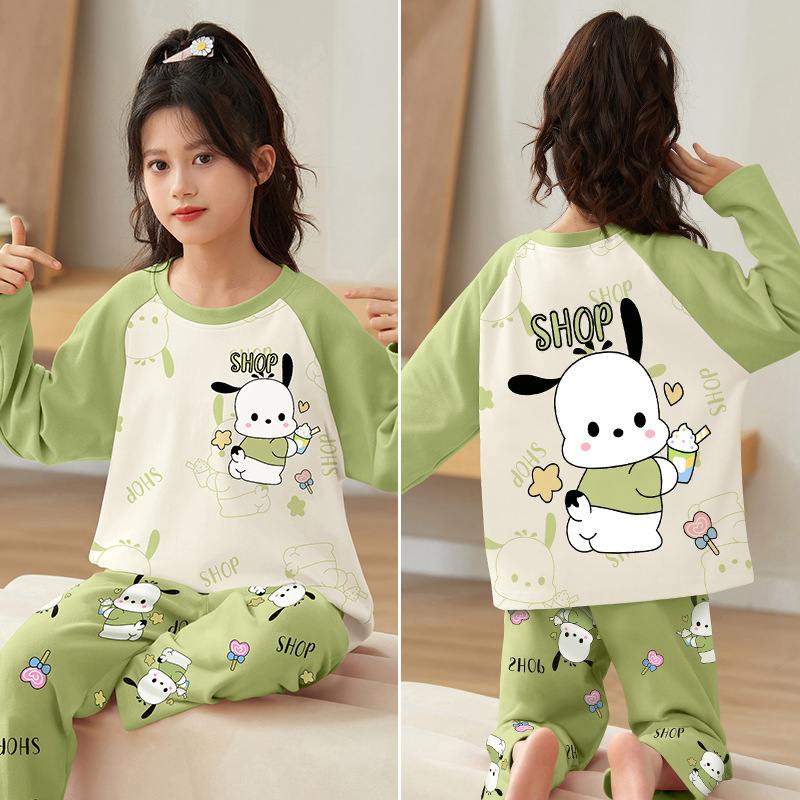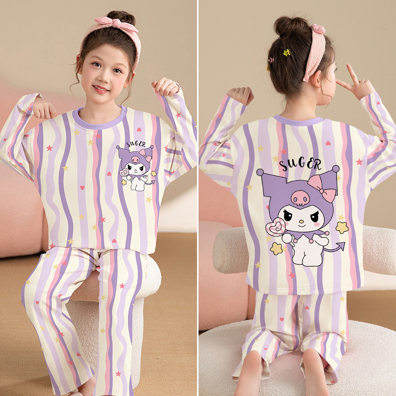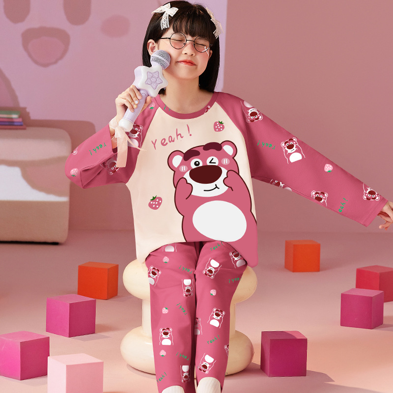 소녀 잠옷 긴 소매 봄과 가을 2025 새로운 작은 소녀 만화 공주 스타일 가을 어린이 집 옷 세트스토어 가기