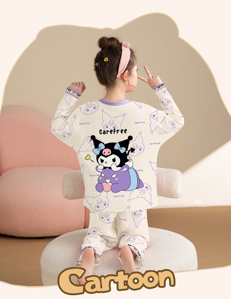 소녀 잠옷 긴 소매 봄과 가을 2025 새로운 작은 소녀 만화 공주 스타일 가을 어린이 집 옷 세트