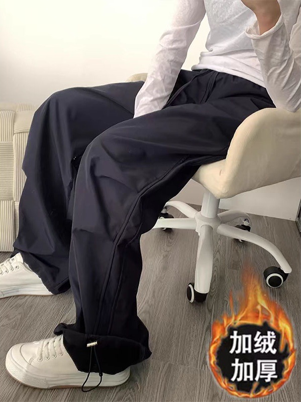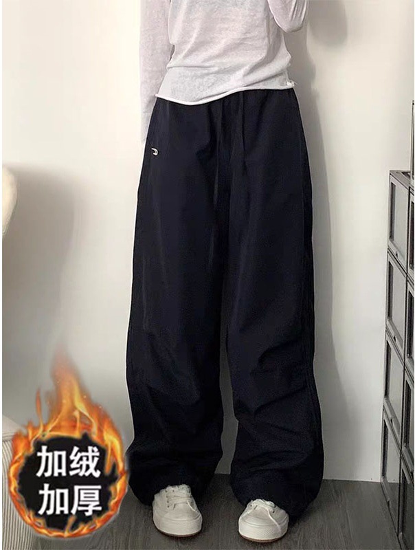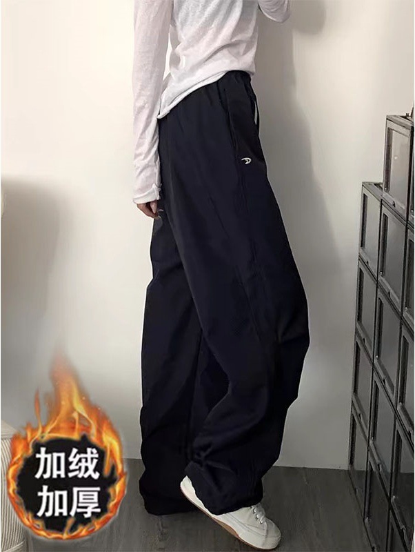 [기모] 기모 바지 여성 가을 · 겨울 신입생 한국판 헐렁한 캐주얼 스포츠 바지 검은색 기모