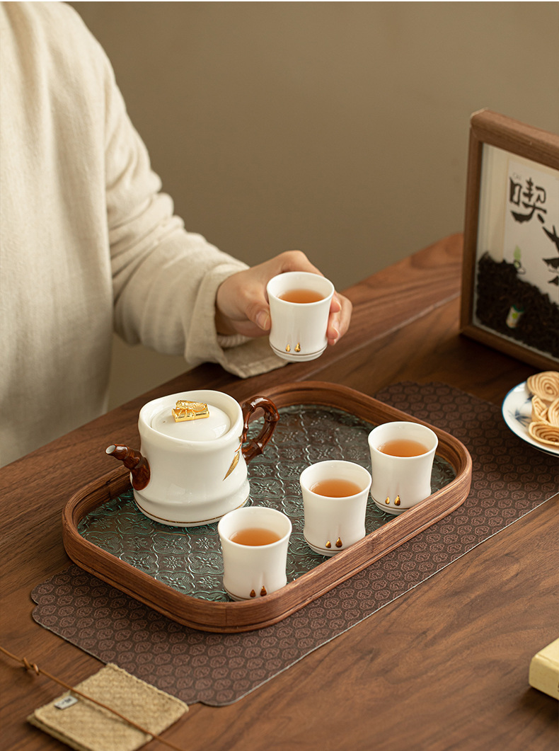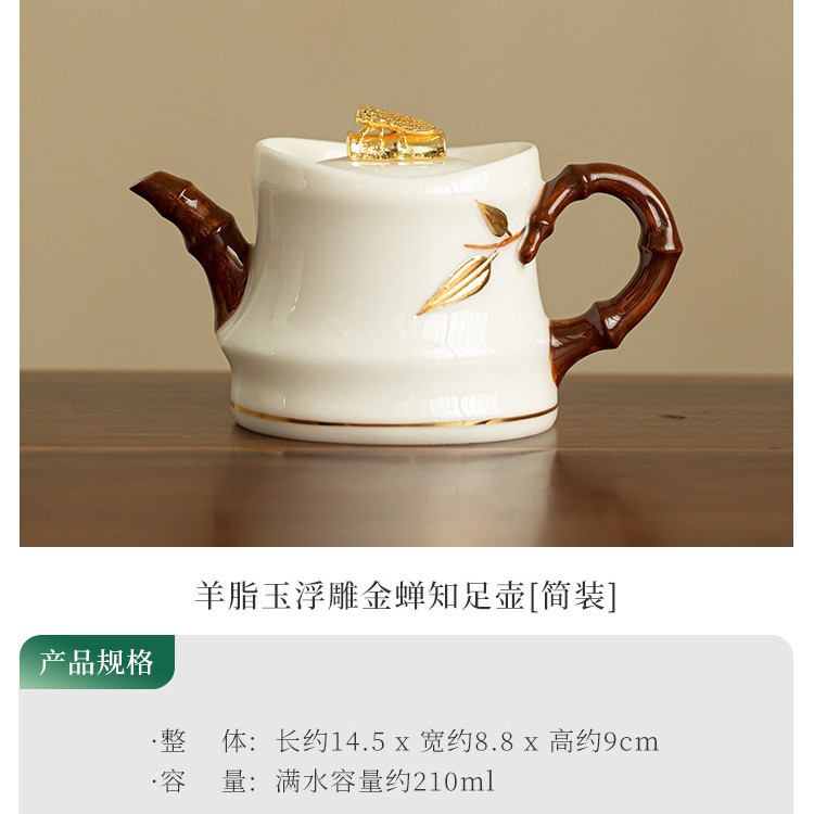 수제 양각 아이스 제이드 도자기 주전자 세라믹 차 세트 주전자 푹신한 주전자 대나무 냄비 가정용 쿵푸 차 세트스토어 가기