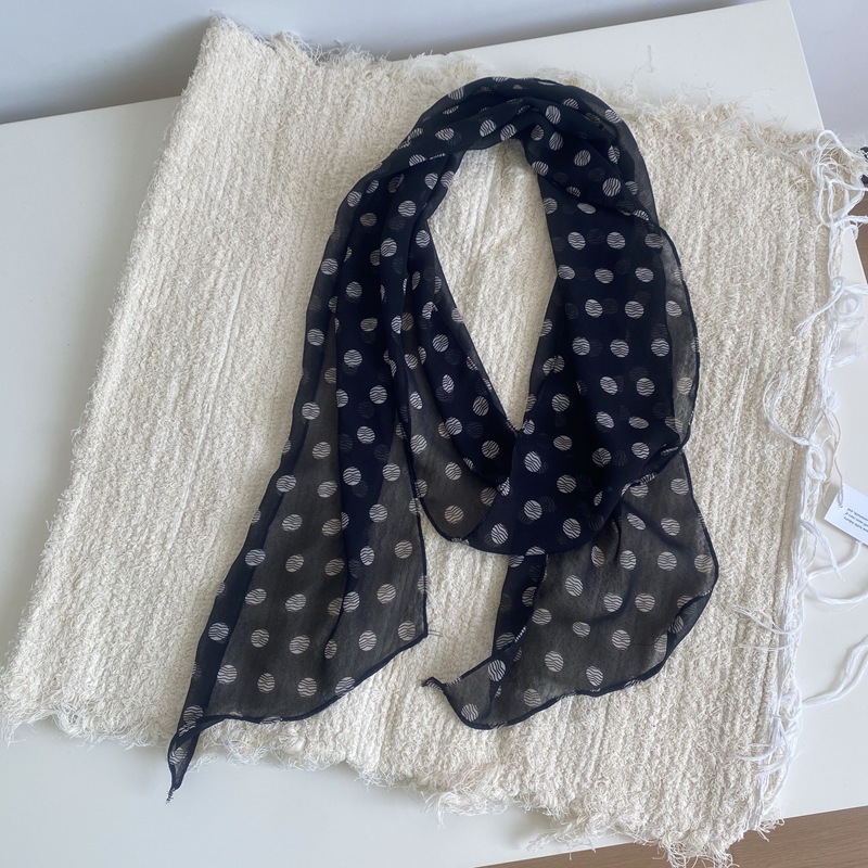 프렌치 레트로 다크 브라운 폴트 도트 스카프 라이트 럭셔리 하이 엔드 우아한 긴 스카프 라이트 성숙한 스타일 얇은 스카프 액세서리스토어 가기
