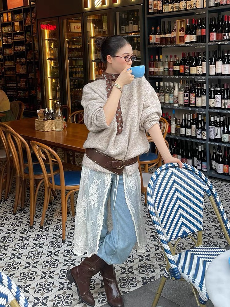 프렌치 레트로 다크 브라운 폴트 도트 스카프 라이트 럭셔리 하이 엔드 우아한 긴 스카프 라이트 성숙한 스타일 얇은 스카프 액세서리