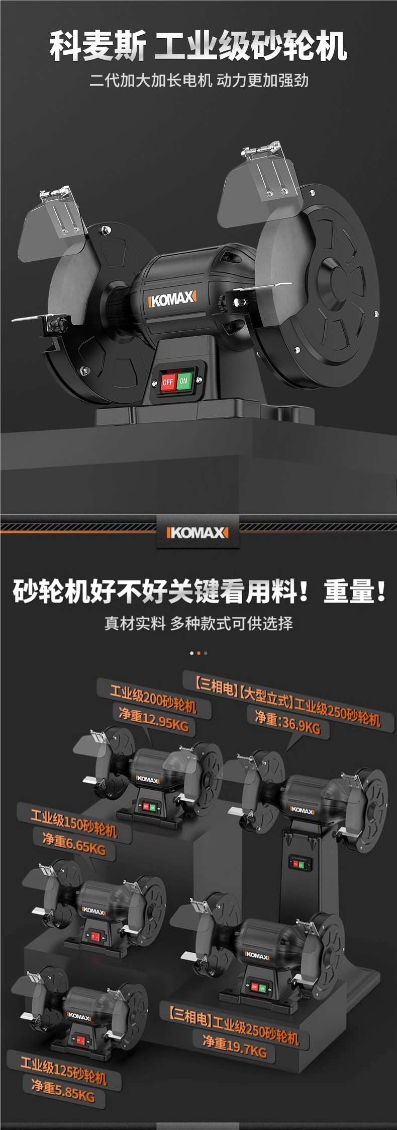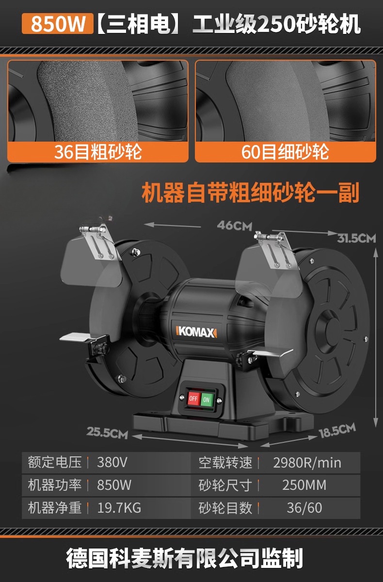 • 850W [3상 전기] 산업용 등급 250 연삭 휠 [산업용 선삭 공구/작업물]