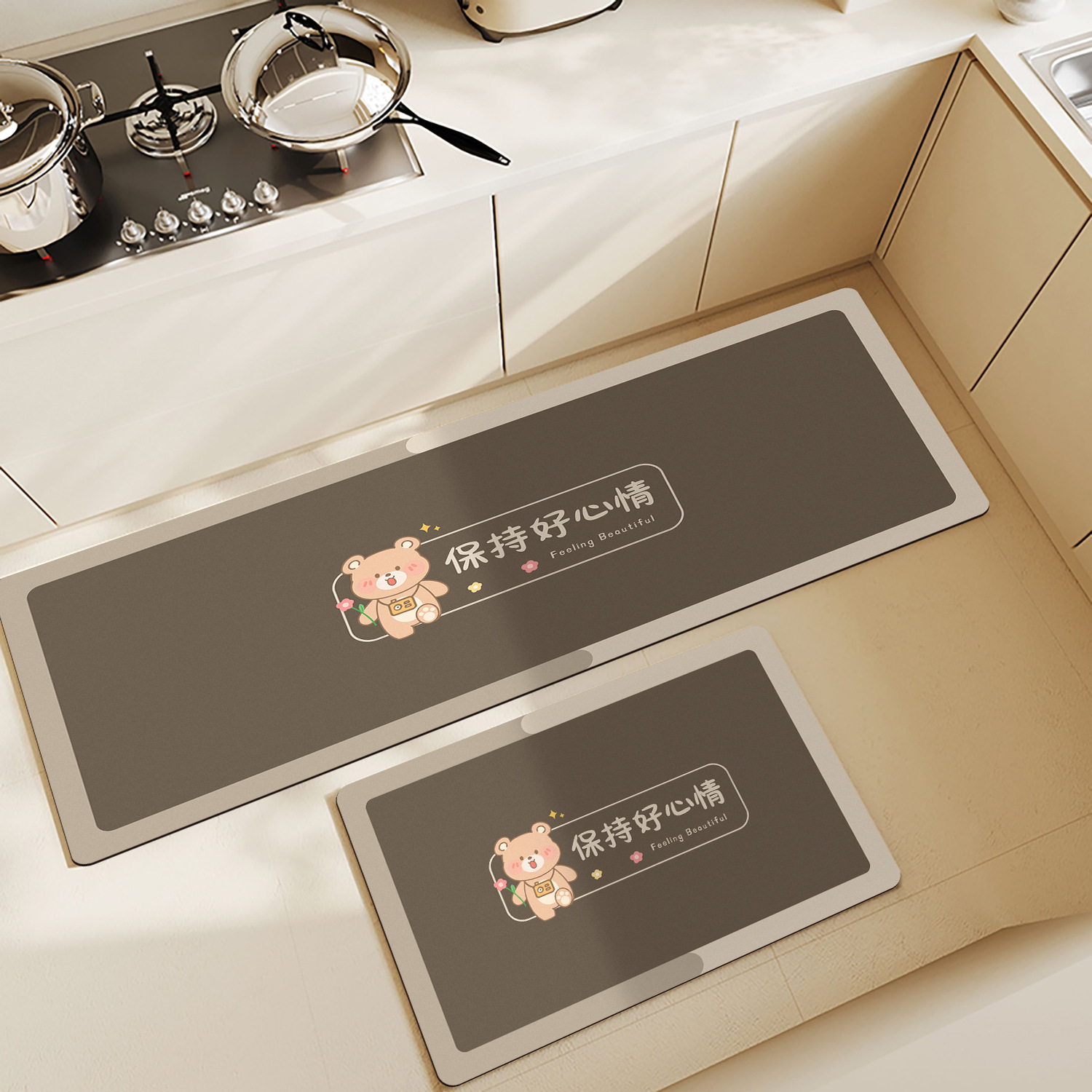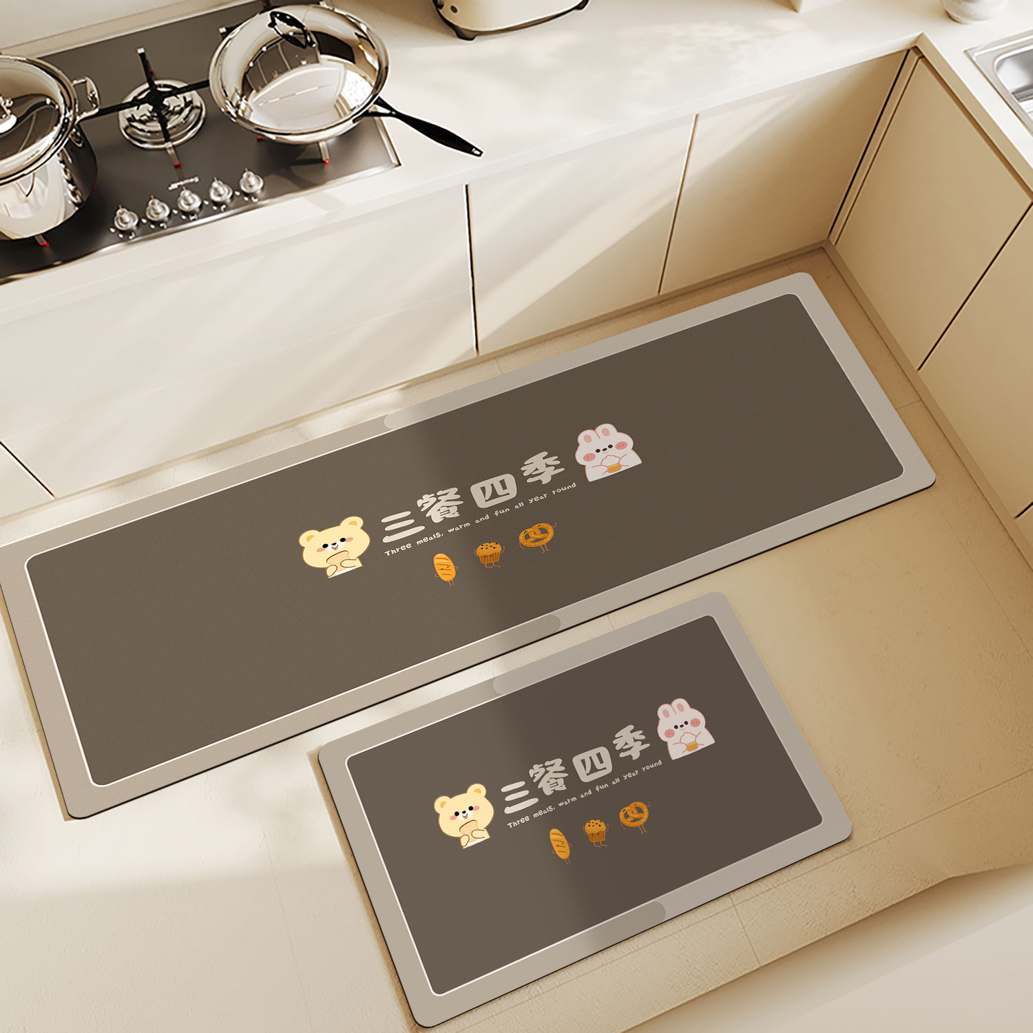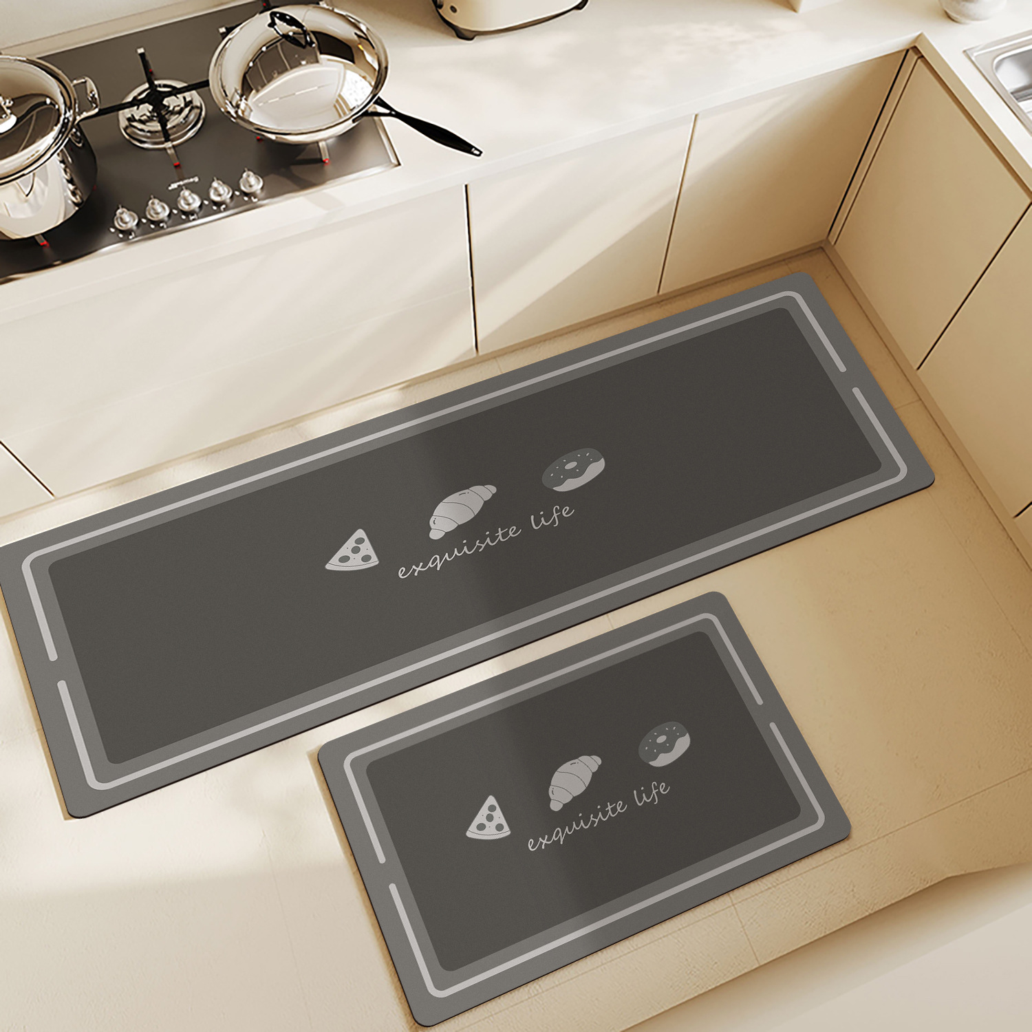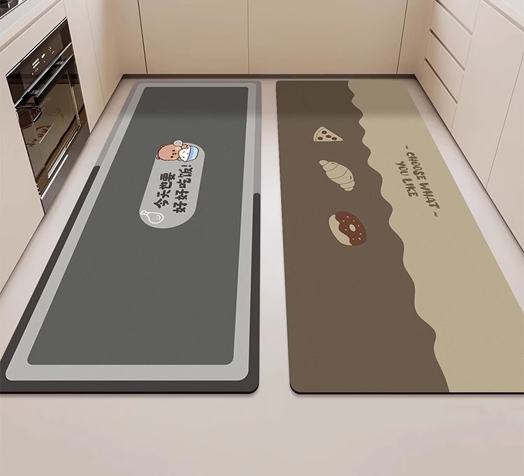 가정용 주방 바닥 매트 물 흡수성 오일 흡수성 미끄럼 방지 발 매트 공장 도매 가정용 긴 스트립 카펫 먼지 내구성있는 바닥 매트스토어 가기
