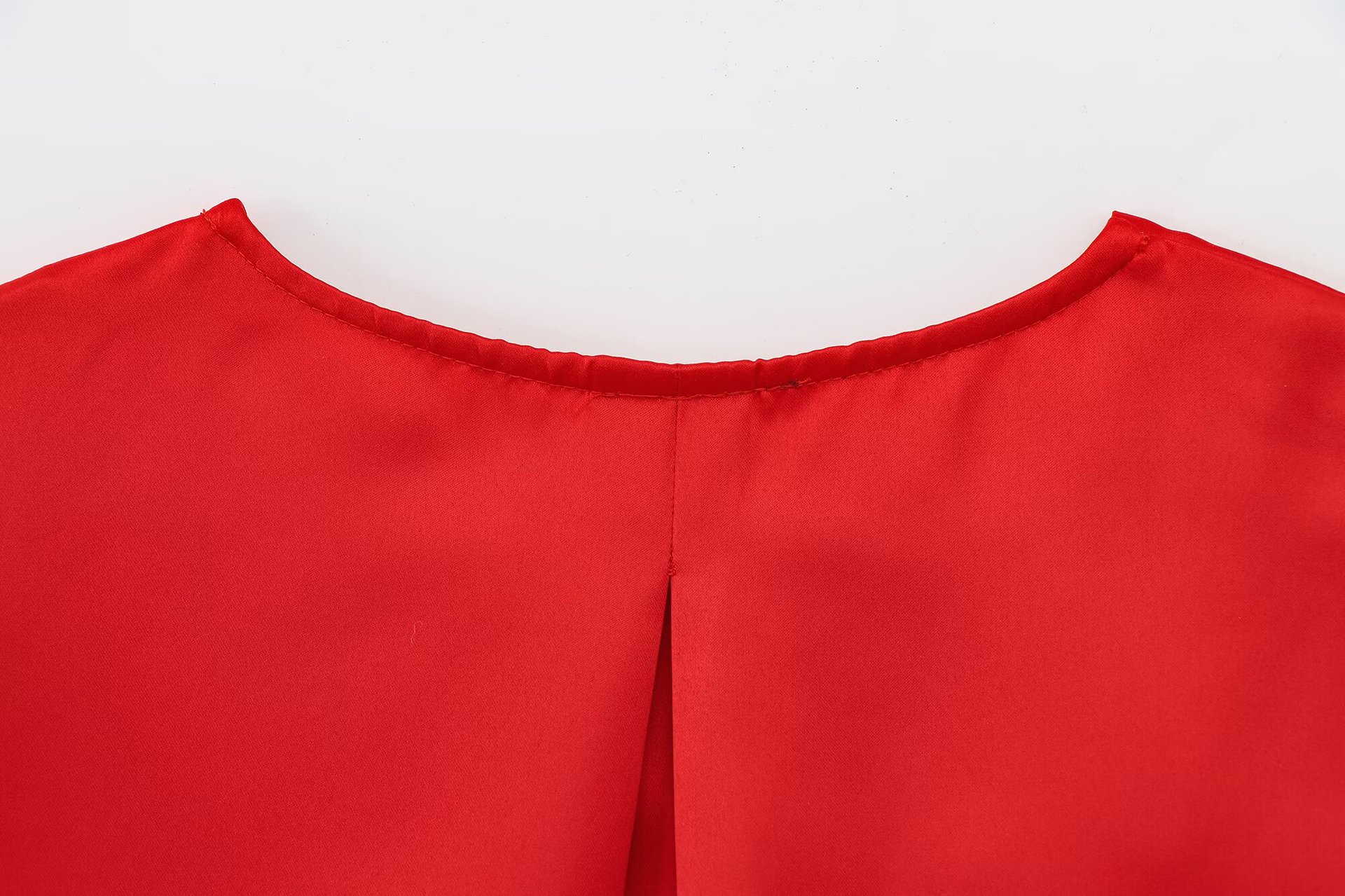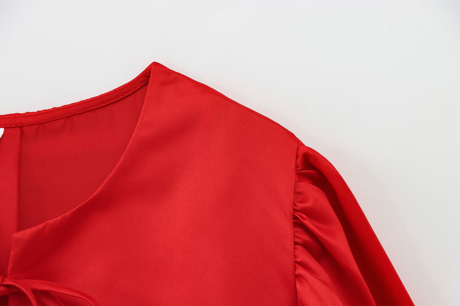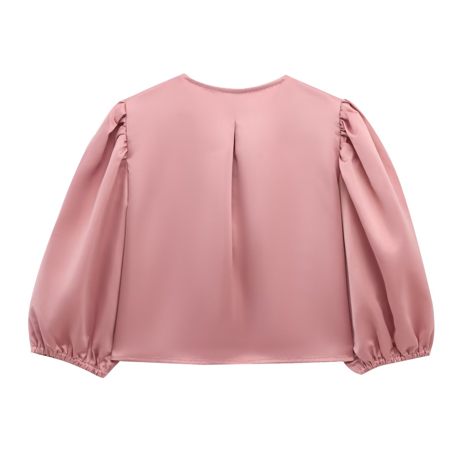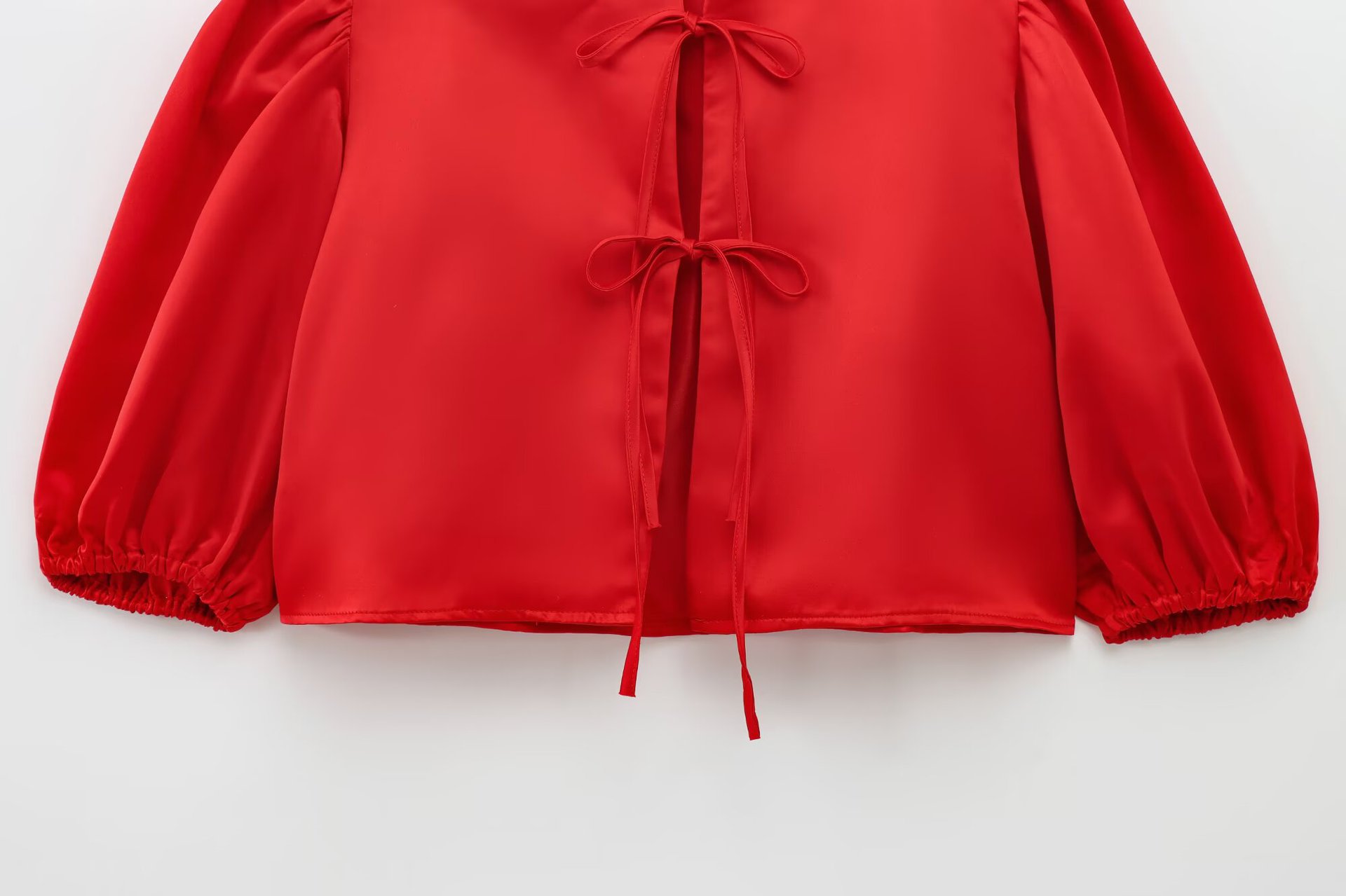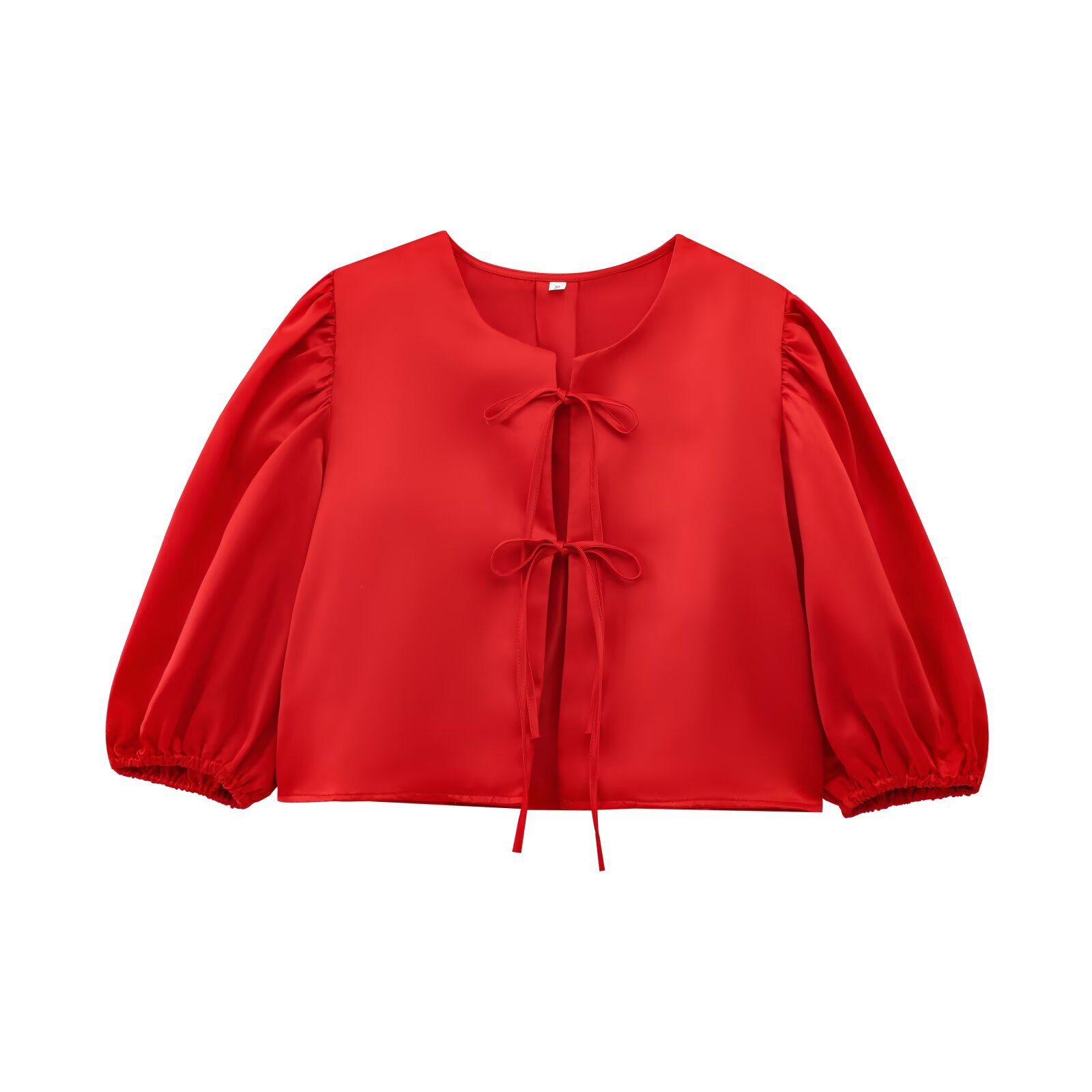 2025 봄 새로운 유럽과 미국의 국경 여성 실크 새틴 질감 버블 슬리브 활 짧은 톱 w063 9228