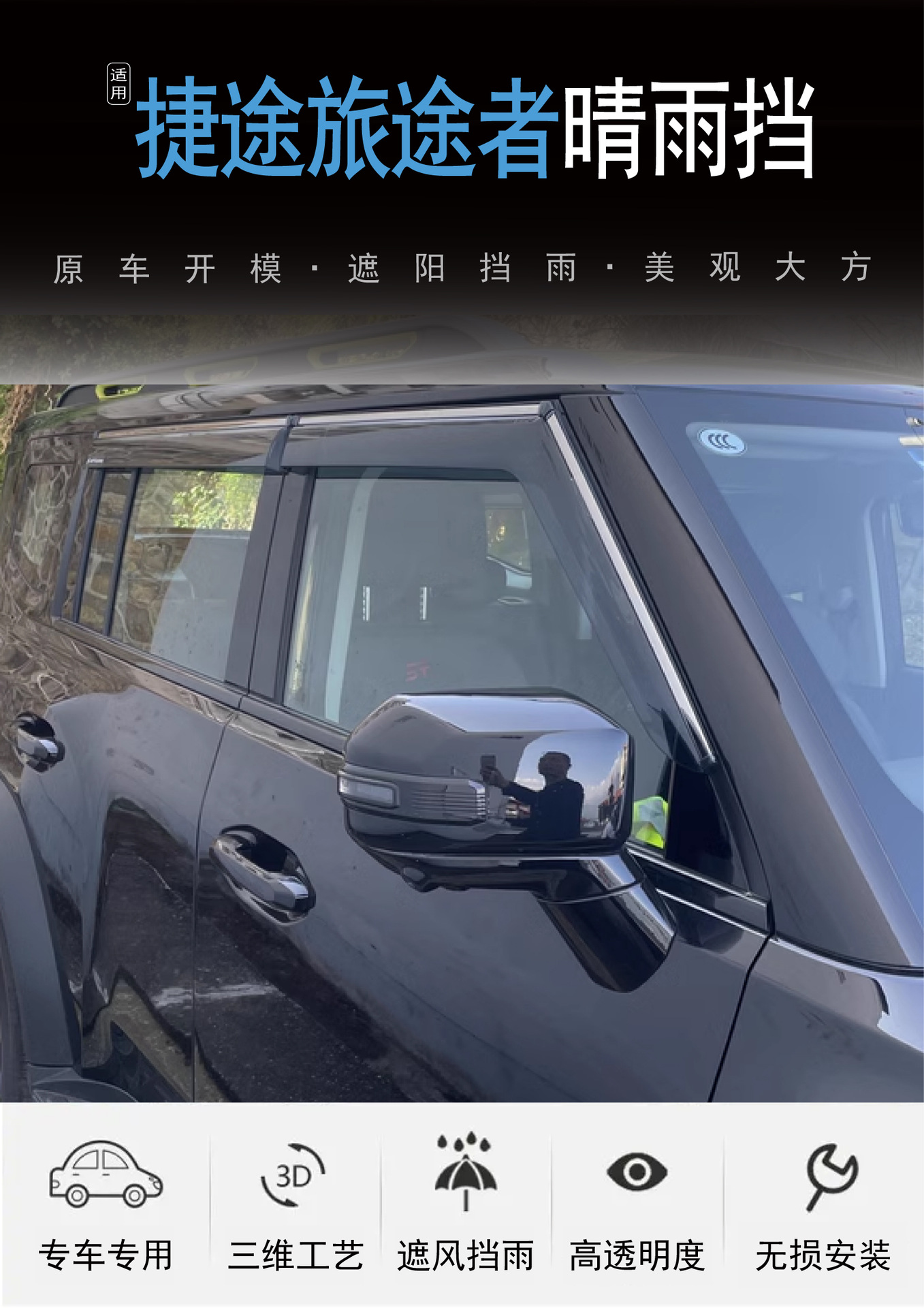 국경 간 응용 프로그램 2023 새로운 제트 여행자 여행자 창 커버 비 방지 검은 자동차 비 방지스토어 가기