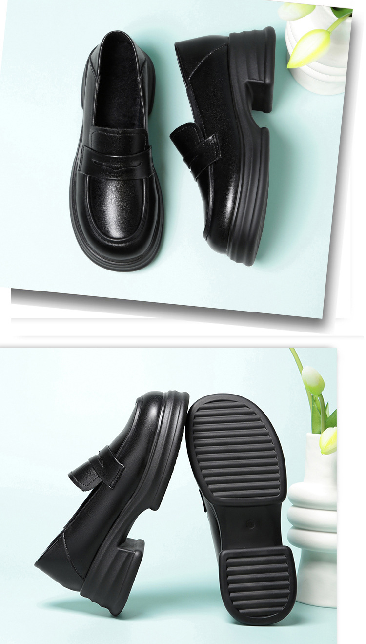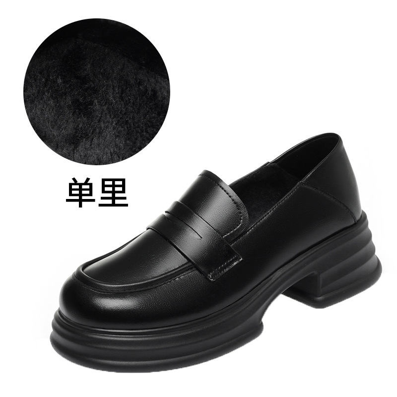 두꺼운 바닥 작은 가죽 신발 여성의 2025 새로운 봄 여성 신발 신발 검은 작업 신발 영국 로퍼 헤어