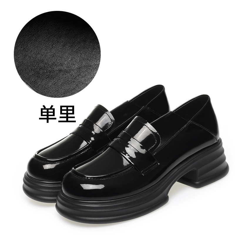 두꺼운 바닥 작은 가죽 신발 여성의 2025 새로운 봄 여성 신발 신발 검은 작업 신발 영국 로퍼 헤어스토어 가기