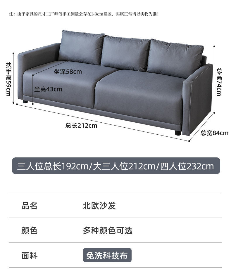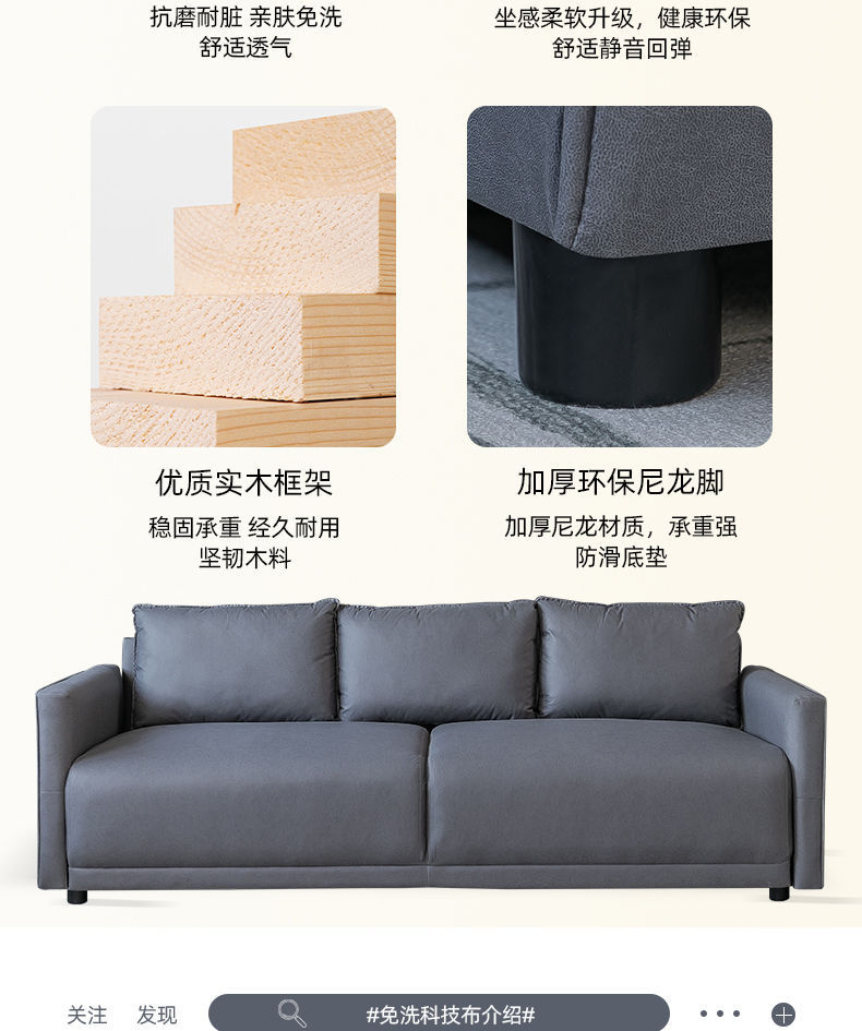 소파 작은 아파트 거실 기술 직물 아파트 임대 방 의류 매장 현대 간단한 3 인 소파