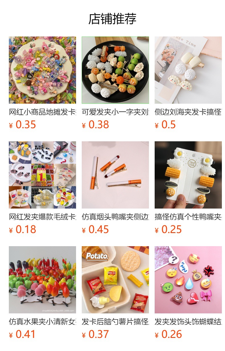 Stall 머리핀 보석 도매 작은 상품 스톨 헤어핀 1 달러 덕빌 클립 일괄 상품 부티크 머리 장식 그물 레드 나이트 마켓스토어 가기