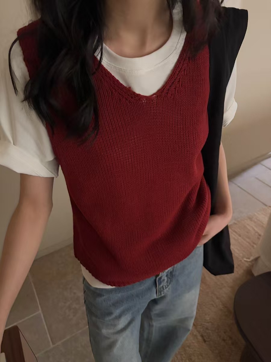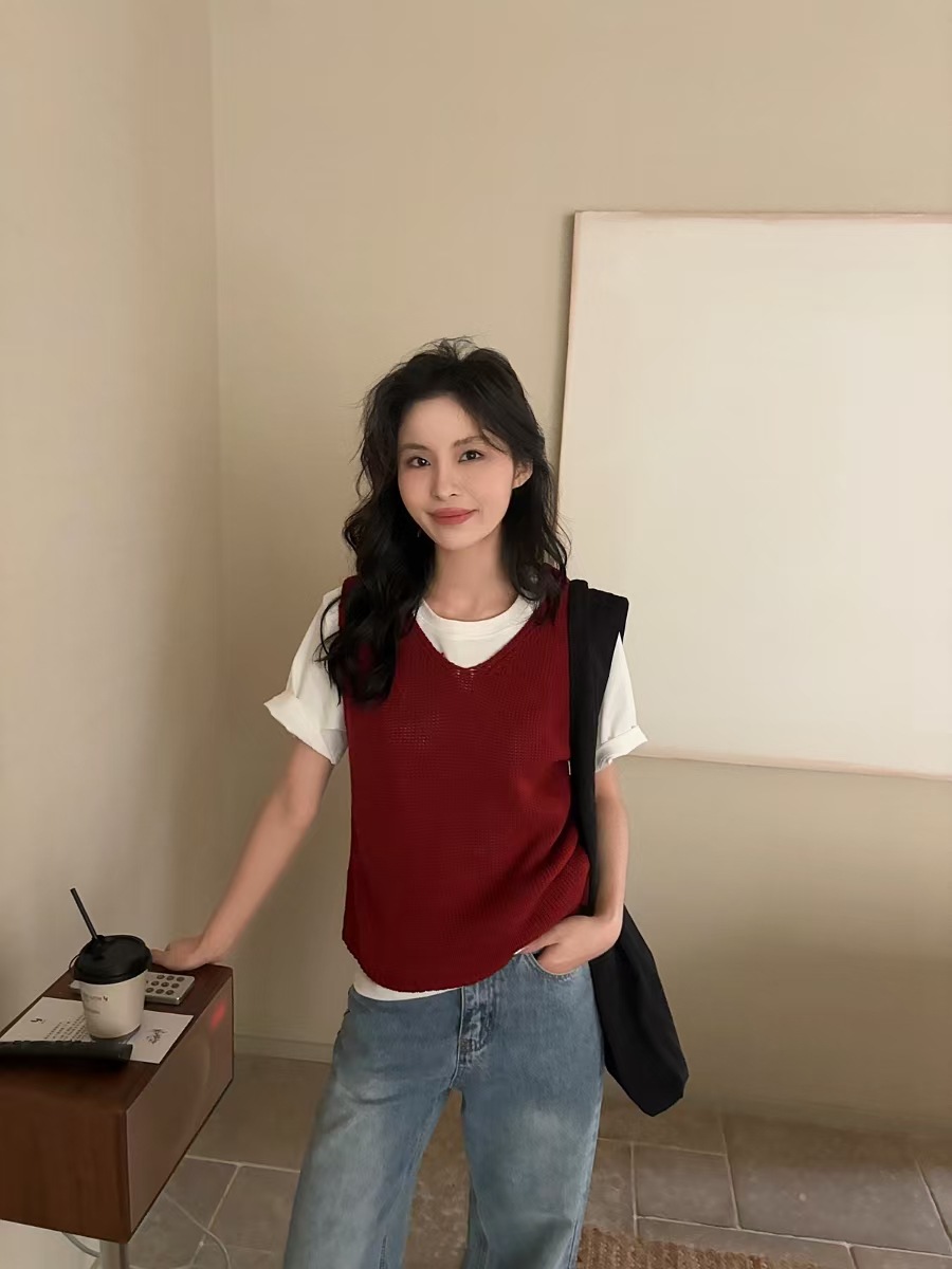 재고정리, 반품/교환 불가, 레이지 스타일 니트 조끼 여성용 2026년 초봄 신상 레이어드 아우터 탑 10885