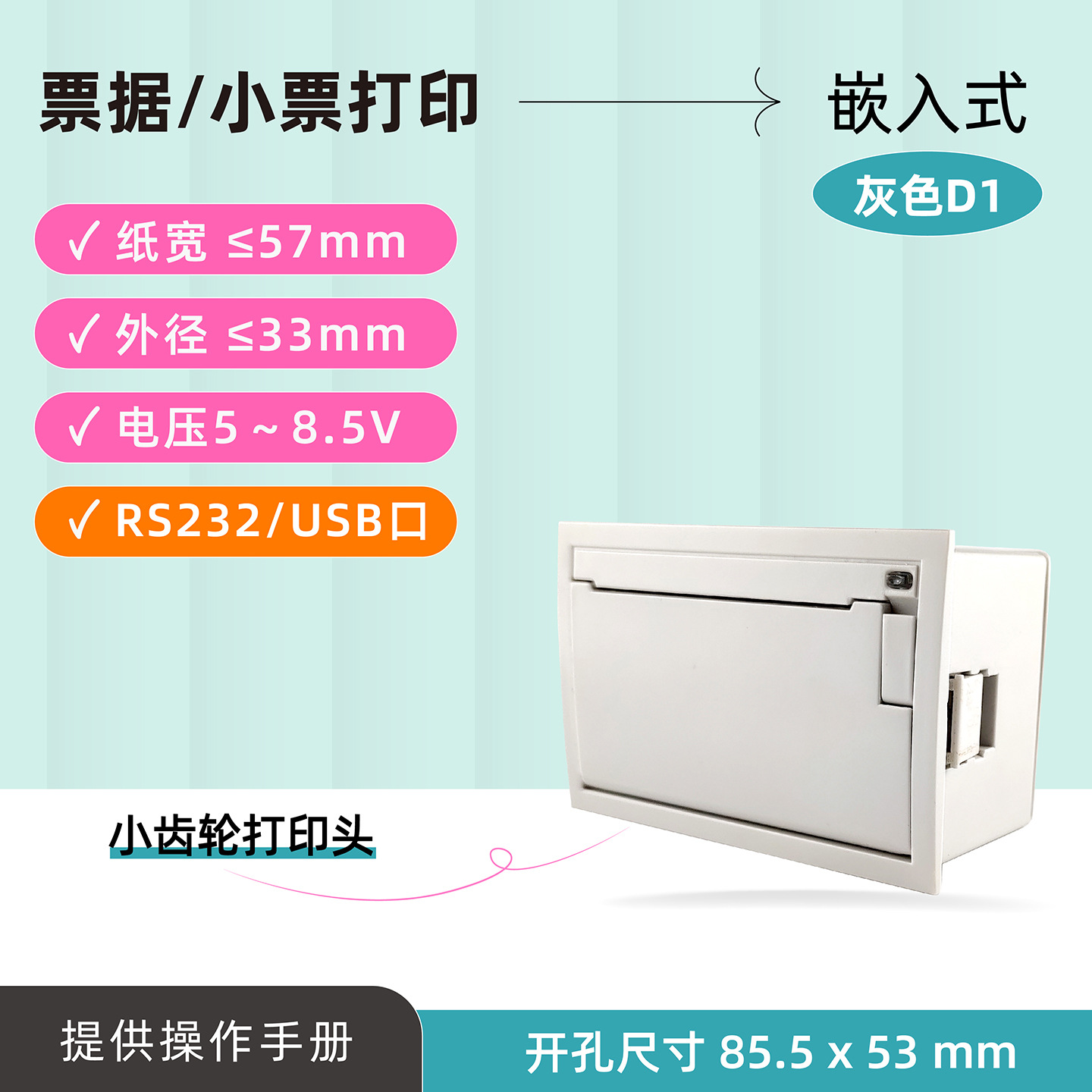 雀印D1 내장형 열전사 프린터 58MM 용지함 계량 시리얼 포트 USB 포트 바코드 프린터 영수증 출력스토어 가기