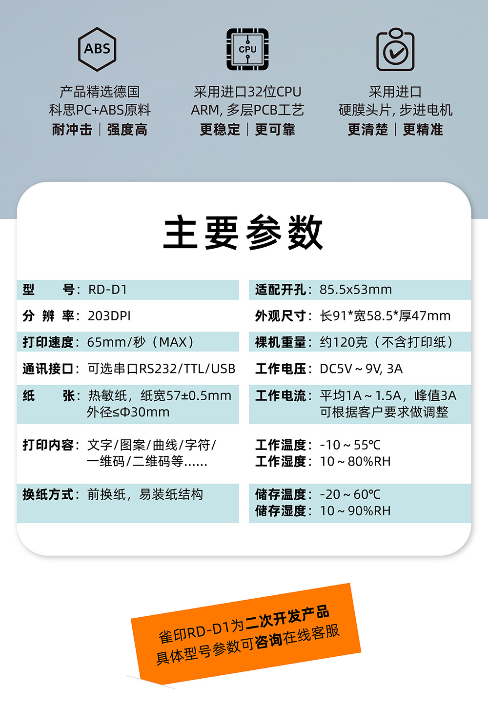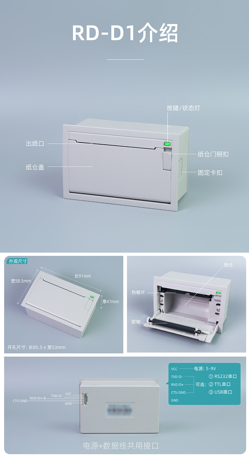 雀印D1 내장형 열전사 프린터 58MM 용지함 계량 시리얼 포트 USB 포트 바코드 프린터 영수증 출력