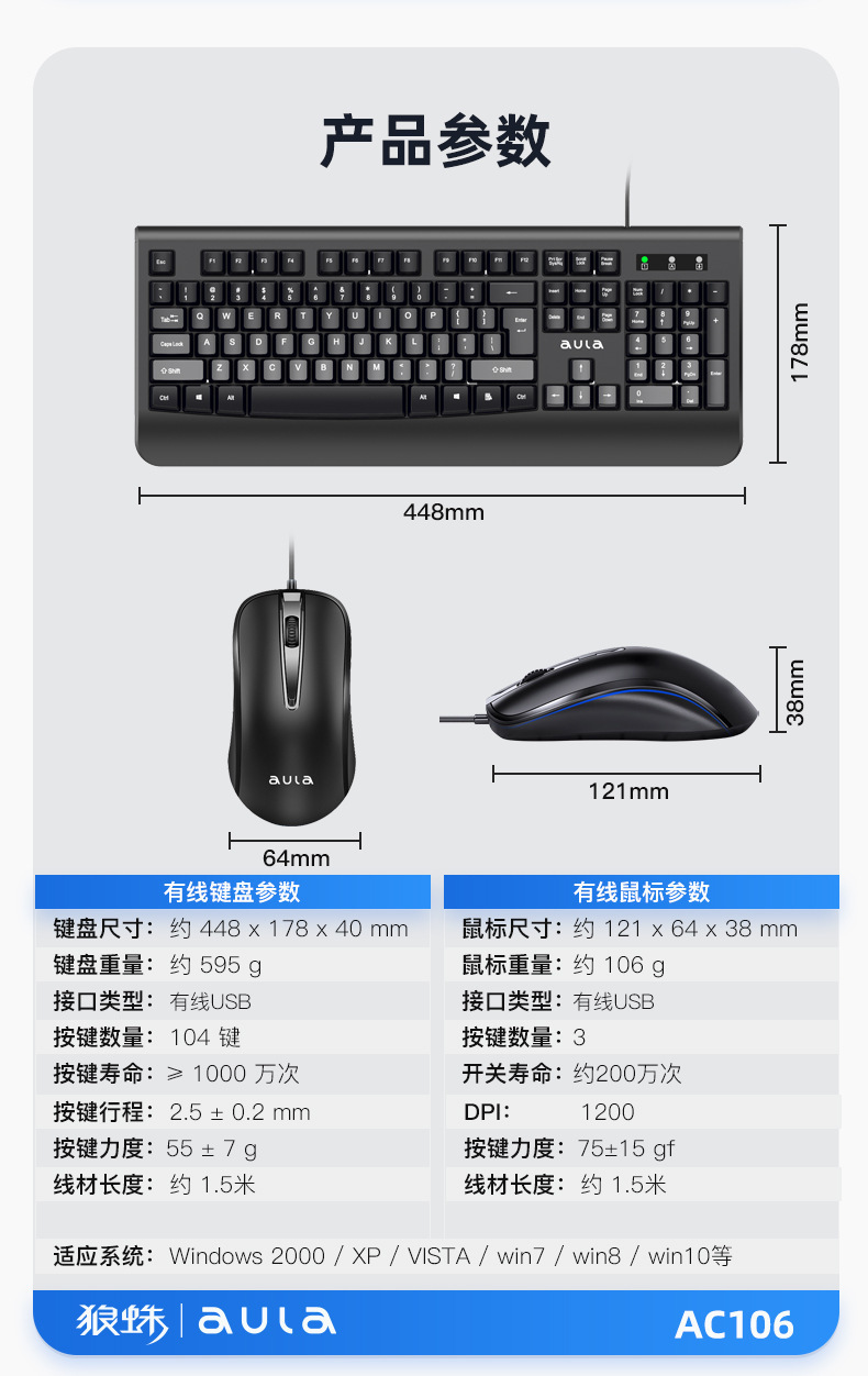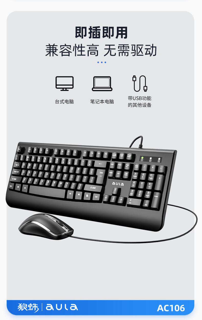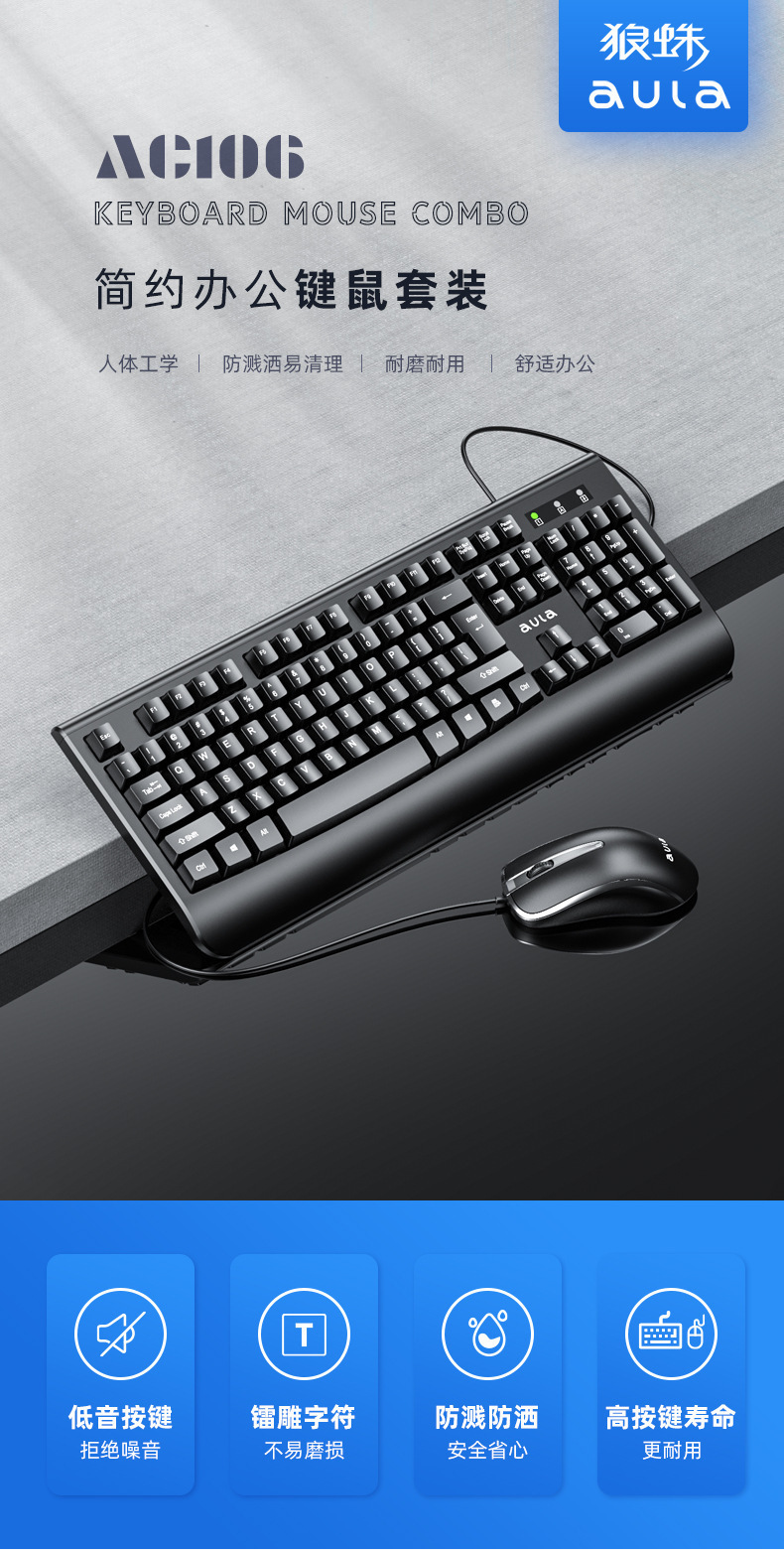 타란툴라 AC106 유선 키보드 마우스 세트 컴퓨터 비즈니스 사무실 게임 키보드 세트 액세서리 도매