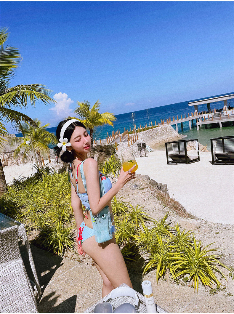 2025 한국 신형 수영복 여성용 섹시 슬림 핏 작은 가슴 푸시업 복고풍 인쇄 스플릿 비키니 3 피스 세트