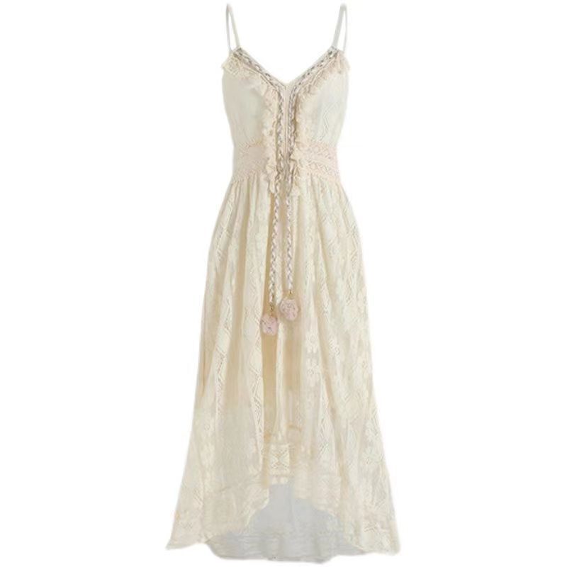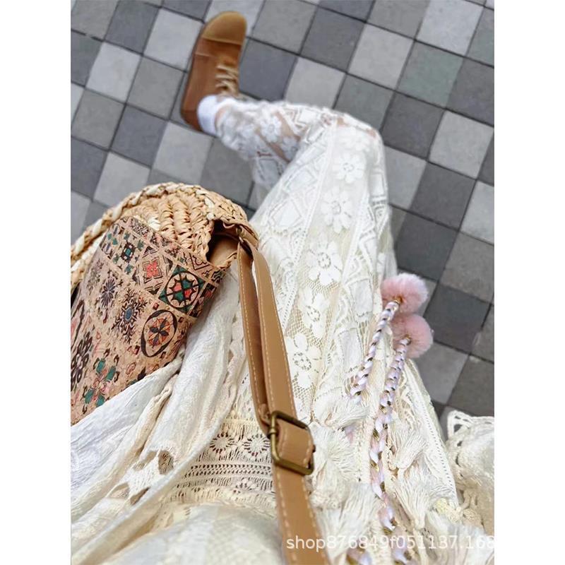 세트 여성 2024 봄과 여름 새로운 휴일 달콤한 스타일 중공 슬링 원피스 슬리밍 긴 원피스 선 스크린 카디건 트렌디