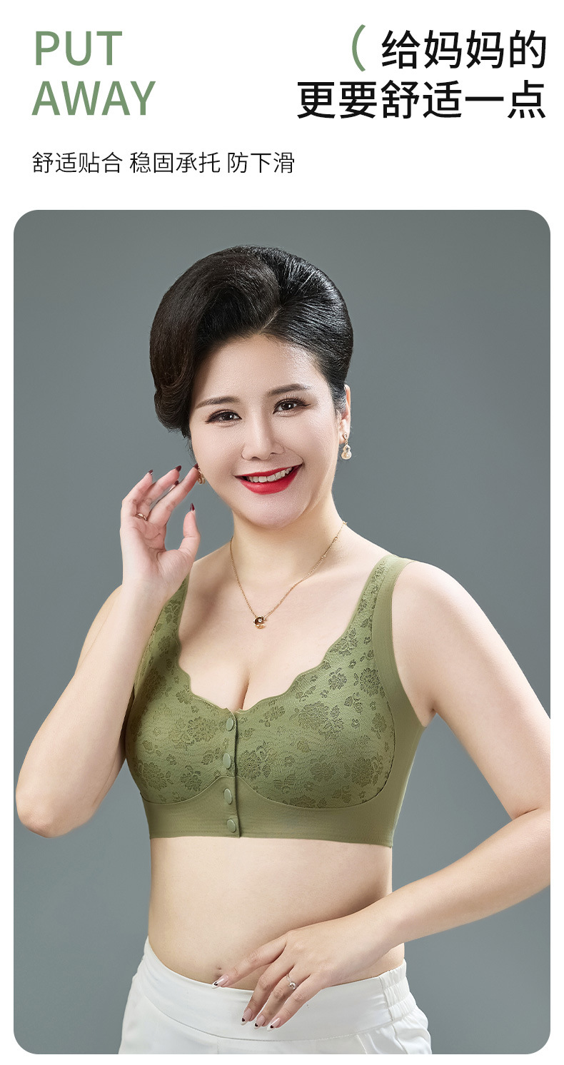 Traceless Front Buckle Mother Bra 중년 및 노인 사람들의 무리 백 속옷 얇은 여성의 레이스 프론트 버클 브라