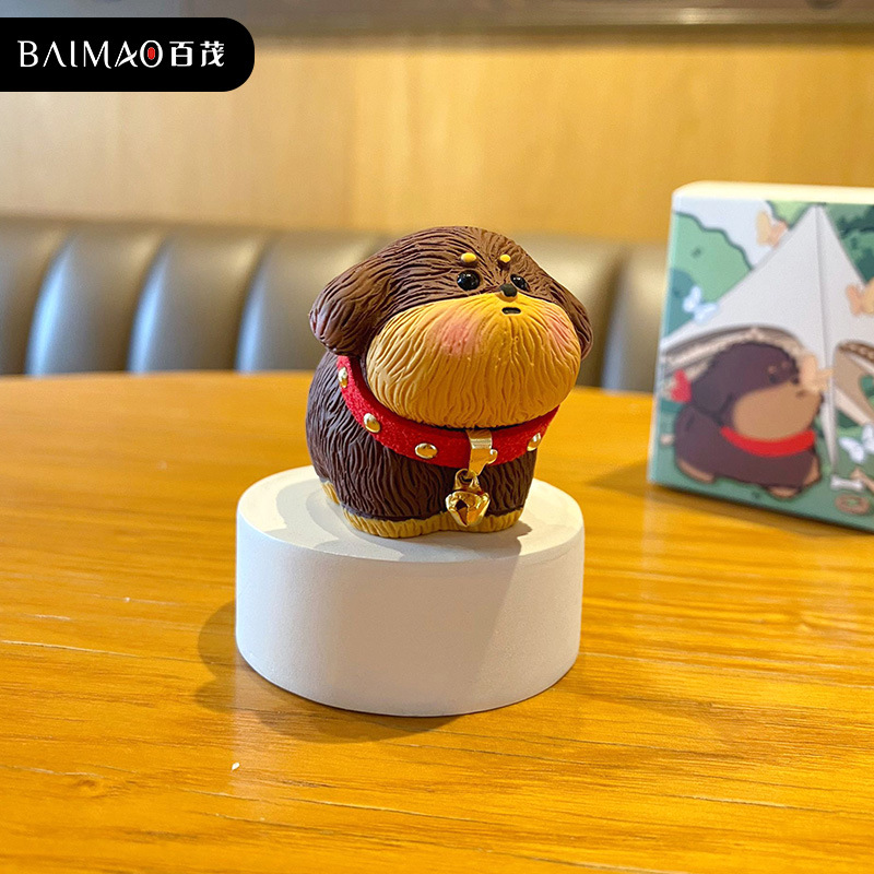 Baimao 오리지널 플러시 귀여운 개 수지 작은 장식품 여성용 크리 에이 티브 절묘한 개 감압 홈 데스크탑 장식
