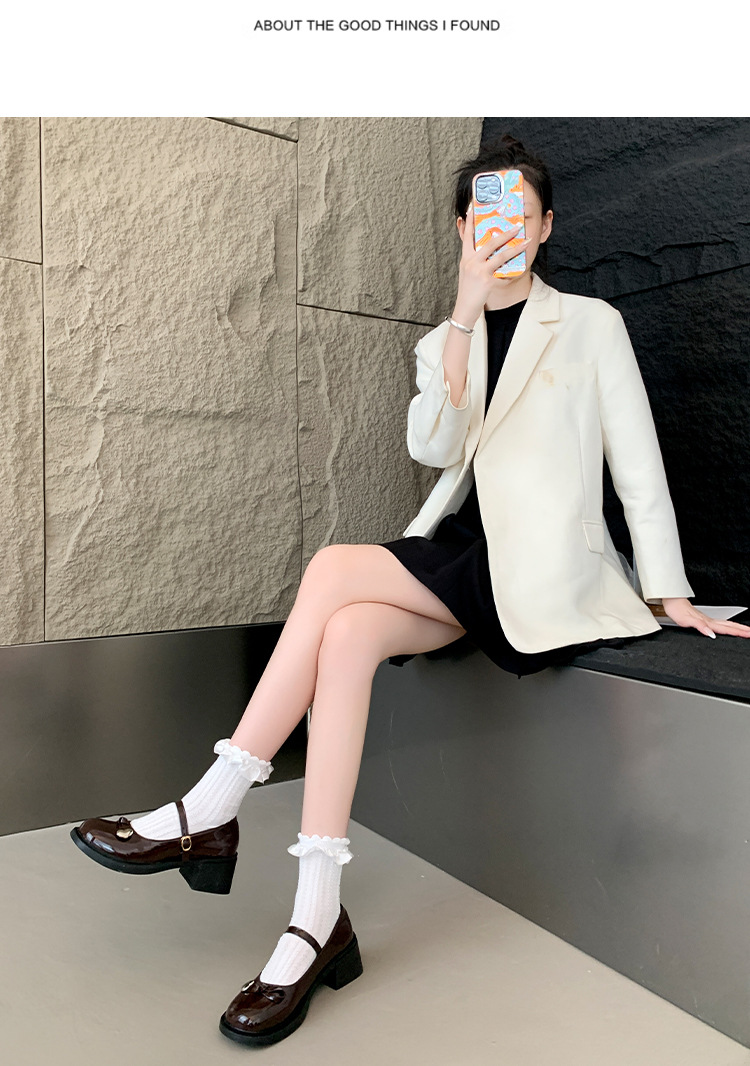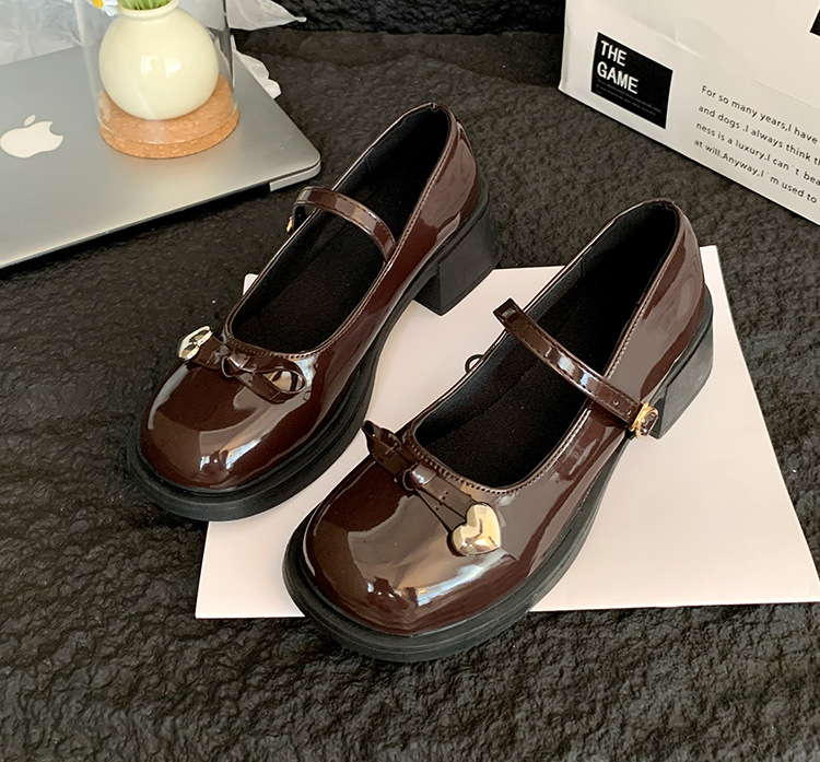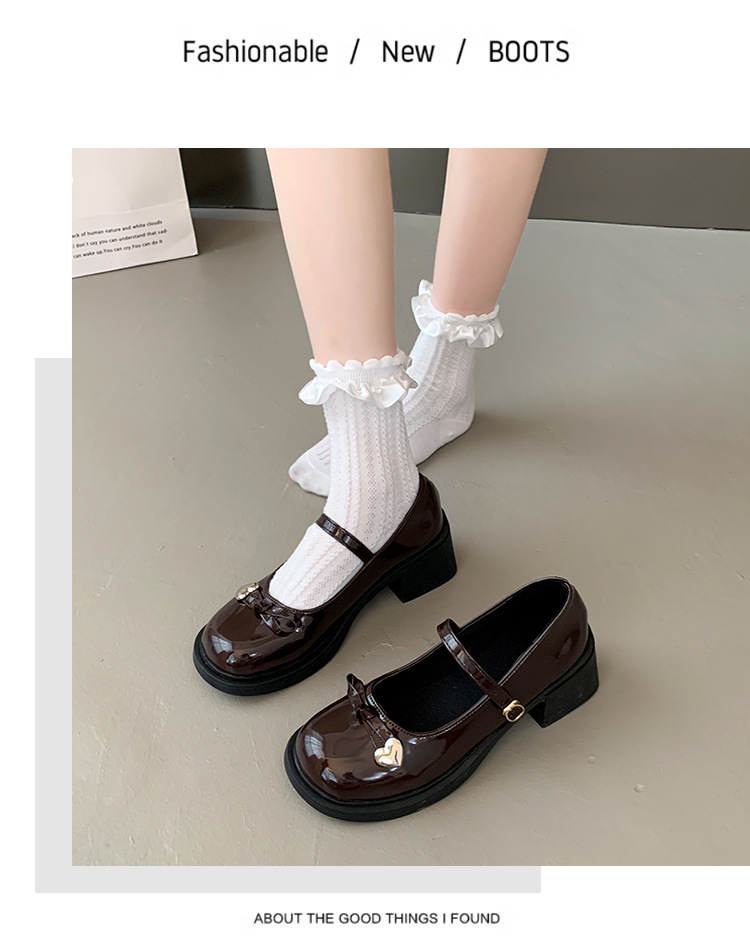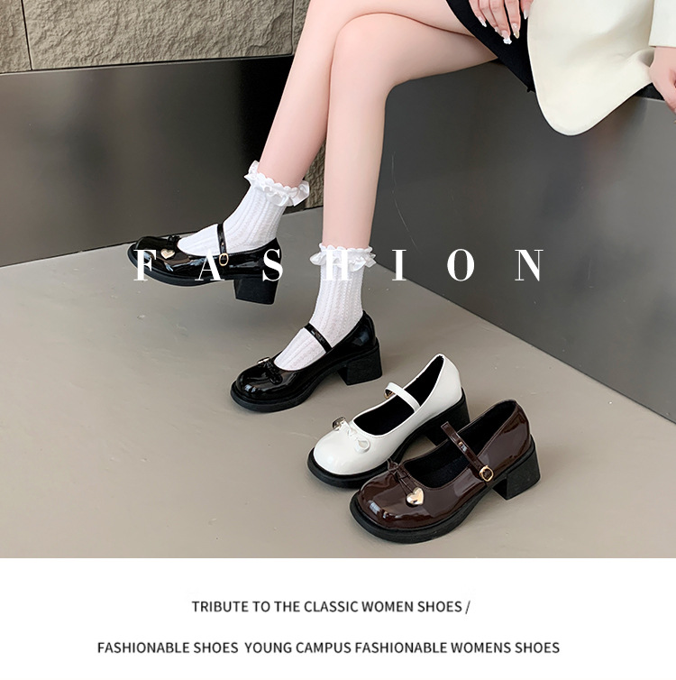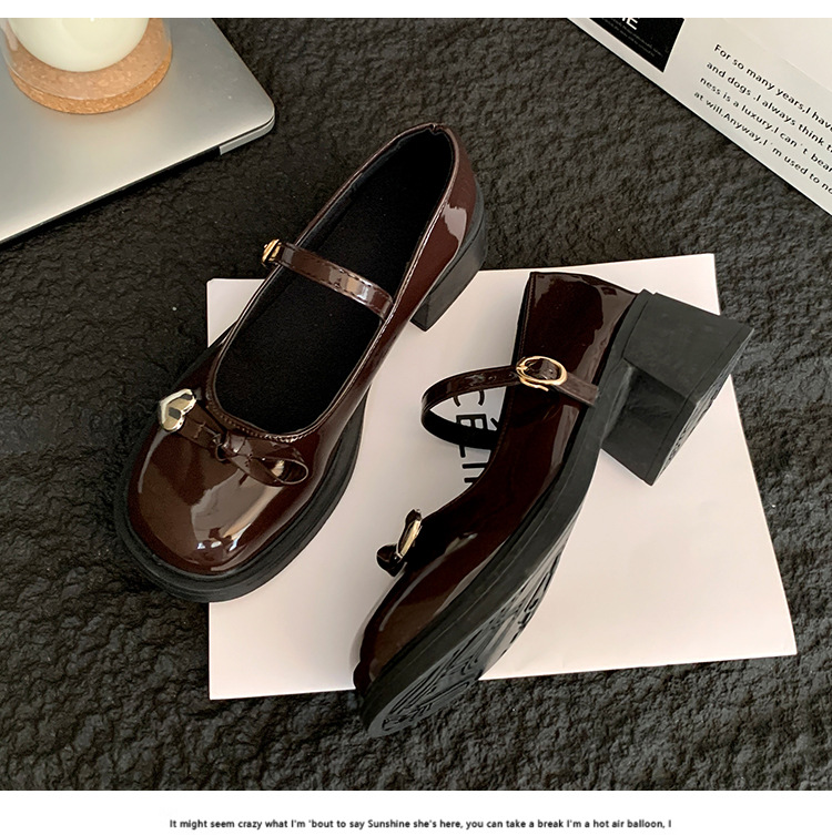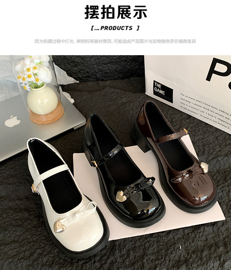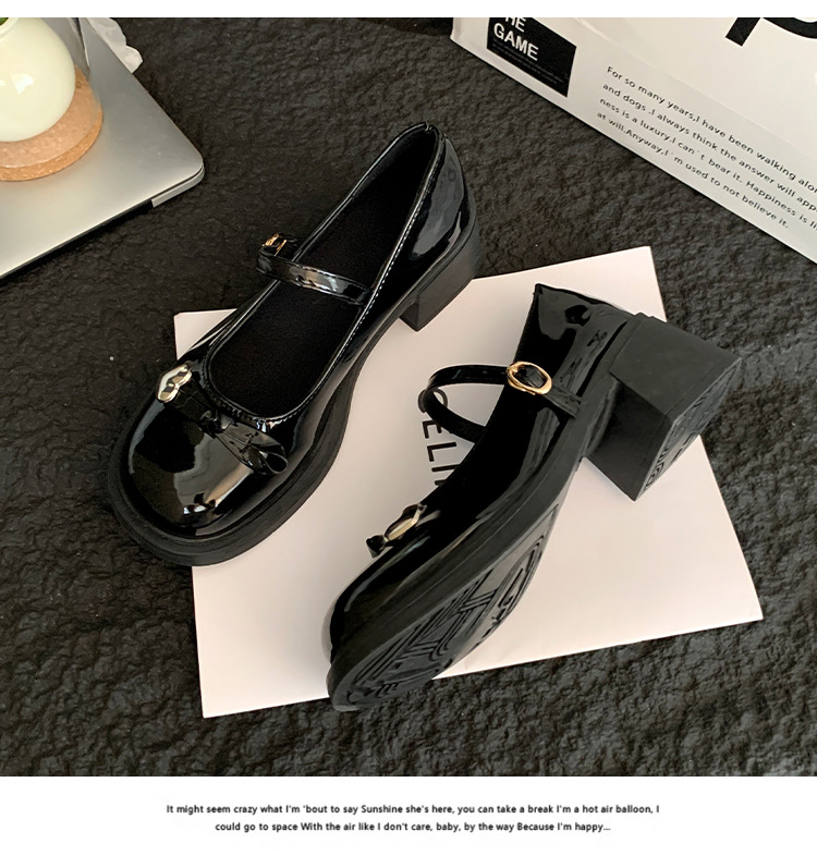 빈티지 두꺼운 굽 메리 제인 신발 여성의 2024 새로운 활 일본 JK 싱글 레이어 신발 버클 블랙 가죽 신발스토어 가기